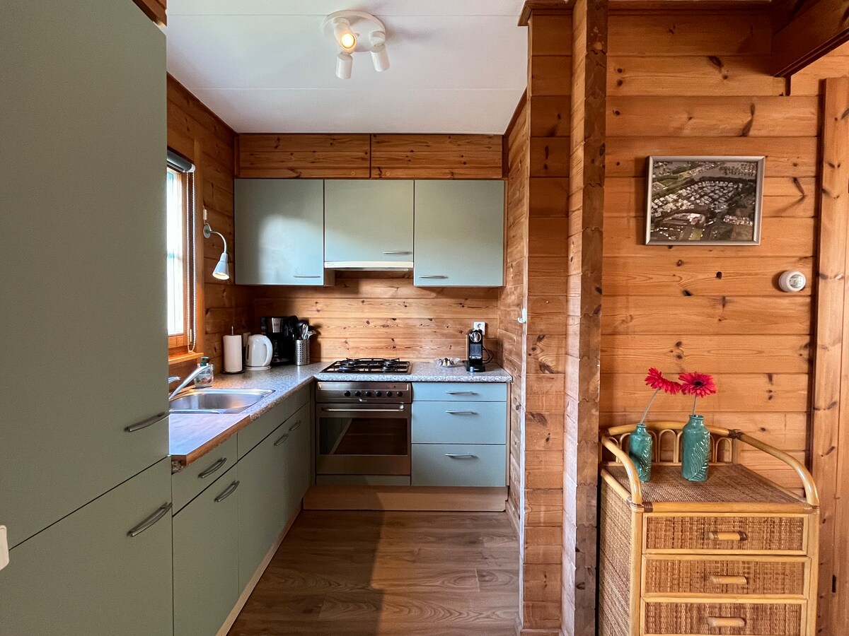 Op zoek naar een vakantie in de natuur, maar zonder zelf een tent of caravan mee te nemen? Huur dan een van onze sfeervolle en compleet ingerichte accommodaties op Camping de Veenborg. Geniet van het buitenleven met het comfort van thuis. Kamer en keuken ineen, compleet ingericht. Koelvriescombinatie en combioven. Waterkoker en koffiezetapparaat Er zijn 2 slaapkamers , ouderslaapkamer bed 1.40 bij 2.00 . Kinderslaapkamer 2 eenspersoonsbedden 70 bij 190