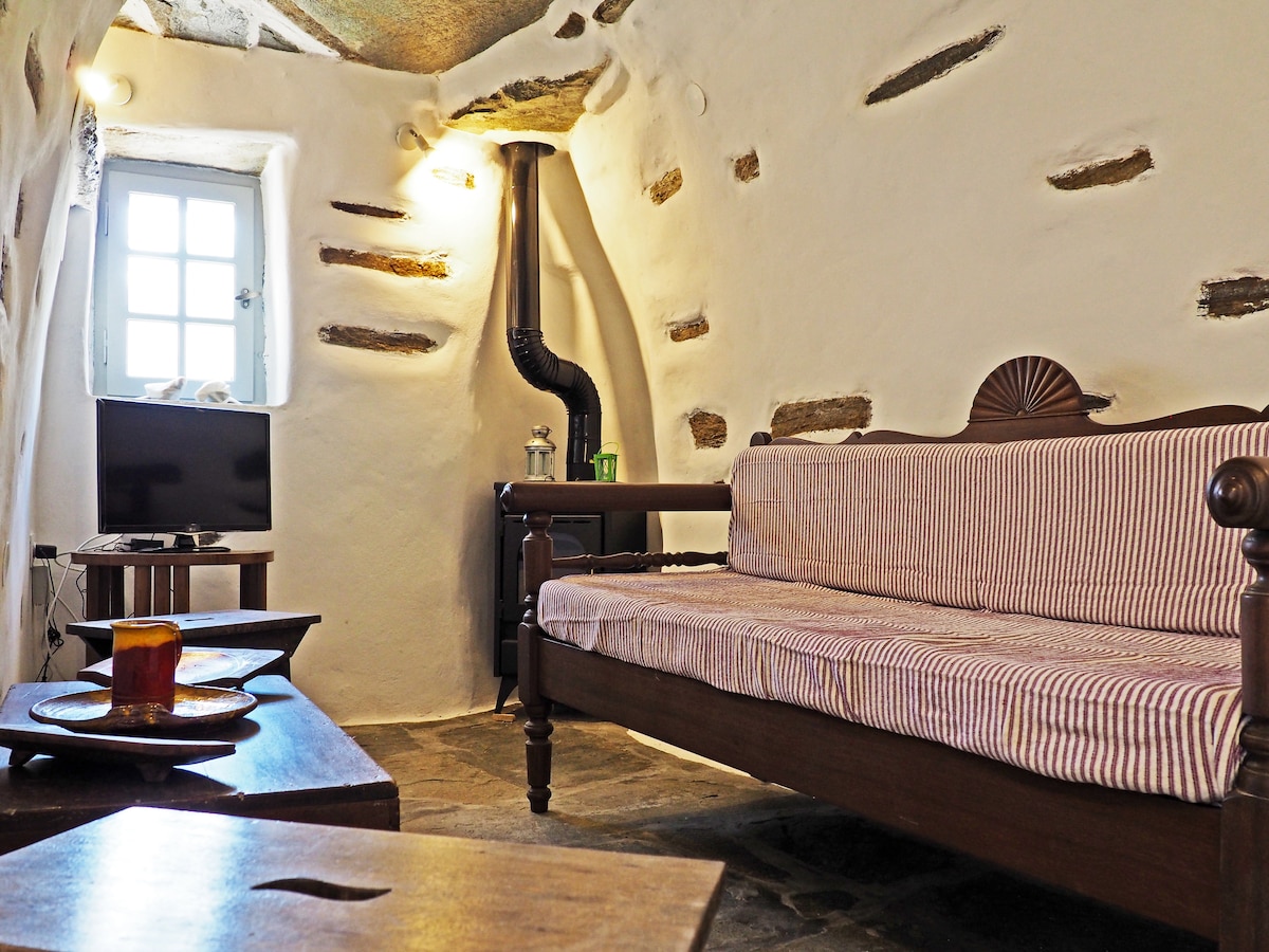 Old Barn Adapted and made with passion by the two brothers Evangelos and Spyros, in traditional standards combining the Comfort and luxury of our Times. It can accommodate up to 2 people in a spacious luxury apartment, the apartment has a kitchen and a large bathroom, the old barn has an outdoor Jacuzzi and views of the blue Aegean Sea.