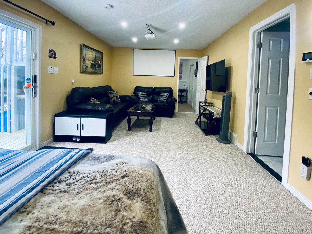 Escape to a spacious 5,600 sq ft home designed for groups to relax and unwind. Featuring a heated pool, home theater, and gym, it sits in a quiet residential setting backing onto forest. With four king bedrooms and additional guest rooms, it comfortably sleeps up to 16 without crowding. Enjoy multiple living areas, a large kitchen, and outdoor space, all just minutes from London’s restaurants, shopping, and attractions.