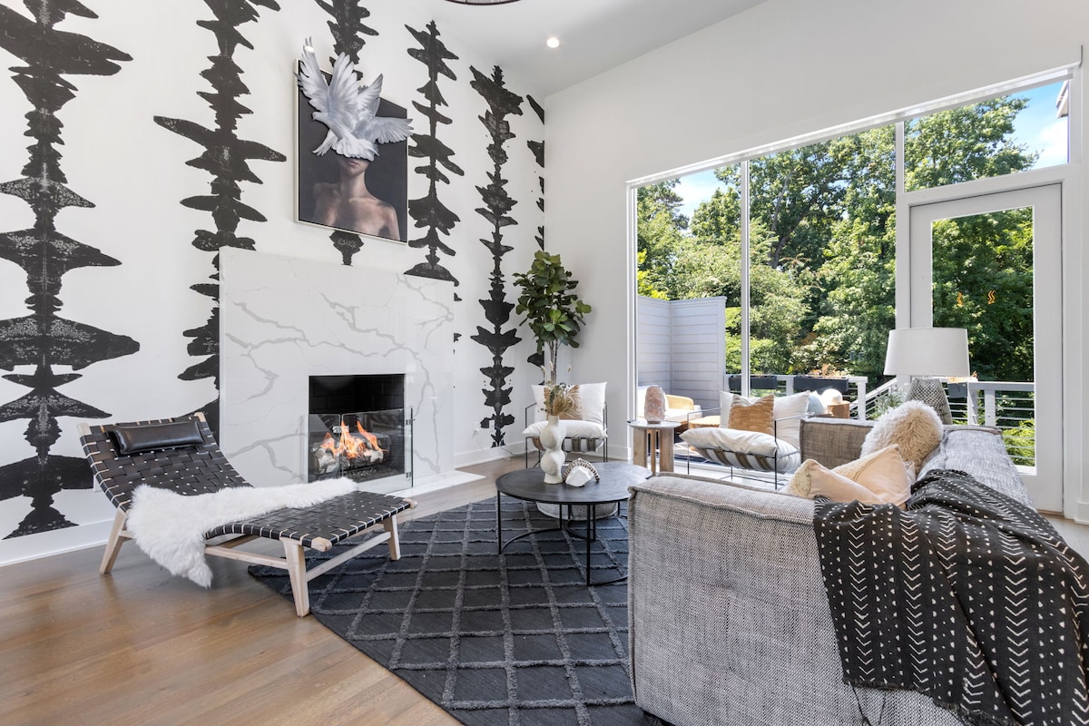 Welcome to your Atlanta getaway, where city views, spacious interiors, and a private rooftop create the perfect stay for groups and gatherings. Enjoy comfort, convenience & a prime Castleberry Hill location. - Sleeps 10 | 3 bedrooms | 5 beds | 2.5 baths - Private rooftop patio w/ Atlanta skyline views - Gas indoor fireplace & central heating - Kitchen w/ Jenn Air appliances - Private elevator access & 2 covered parking spaces - Family-ready w/ dedicated workspace