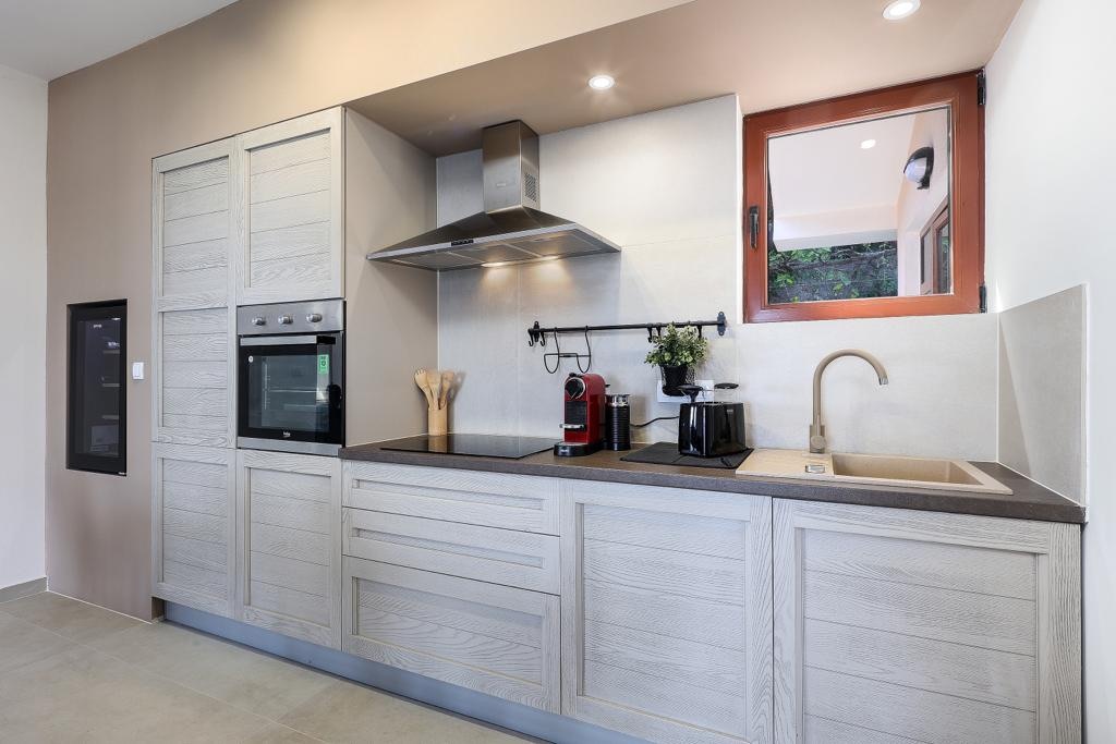 Whether active or romantic vacation for two or family time with up to three children, in our accommodation you lack nothing. You can expect a breathtaking sea view, a spacious pool, a whirlpool bath with a view, a private sauna with a view, a huge charcoal grill with outdoor kitchen, fully equipped kitchen with island and side by side refrigerator, a private terrace, a personal parking space, community garden with fitness area and much more...