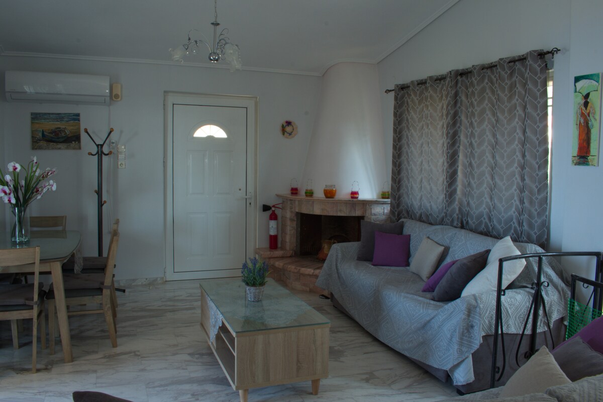 Experience an Unforgettable Getaway in the heart of Megali Mantineia! Our newly renovated villa, located just 1.5km from the stunning Akrogiali Beach, offers the perfect retreat. With its private stone yard, you'll enjoy a tranquil and secluded atmosphere throughout your stay. Explore nearby beaches, unwind at beach-bars, and savour the flavours of traditional seaside restaurants. Stay connected with free WiFi and park on the premises!