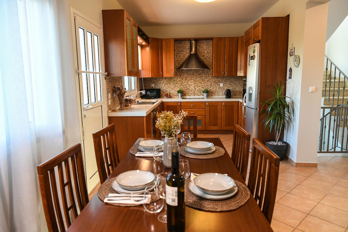 Kick back and relax in this calm, stylish space. Country house fully renovated, 100 sq. m. with 267 sq. m. balconies and garden, on the edge of the beautiful and quiet village of Mulki, 3.5 km from the sea and the beautiful beaches, and 1.8 km from the archaeological site and museum of Ancient Sikyon. This residence is perfect for families and couples. 2 Fully equipped kitchens, 2 fully equipped bathrooms, 2 superior beds for two, 2 single beds and sofa bed for two, high speed WiFi, Smart tv..