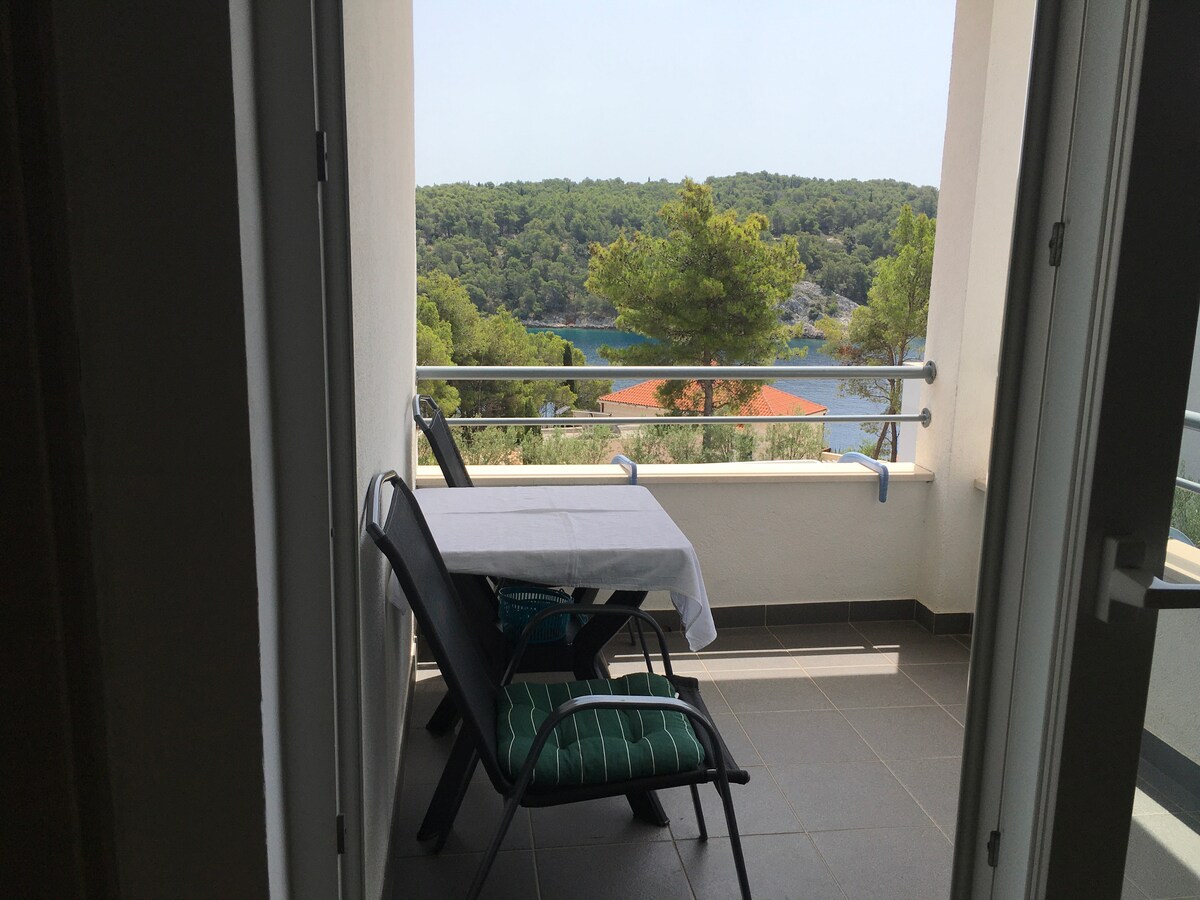 Welcome to our cozy one bedroom penthouse flat on the island of Brač boasting 65 sqm space and a balcony. Our family house is a traditional Dalmatian stone house built only 6 m from the sea on the property of 1500 sqm hidden in the shadow of 50 year old Mediterranean trees. Those who want to spend their vacation in the quiet place next to the sea should come to us – to our little village of Bobovišća na Moru on the southwest side of the island.