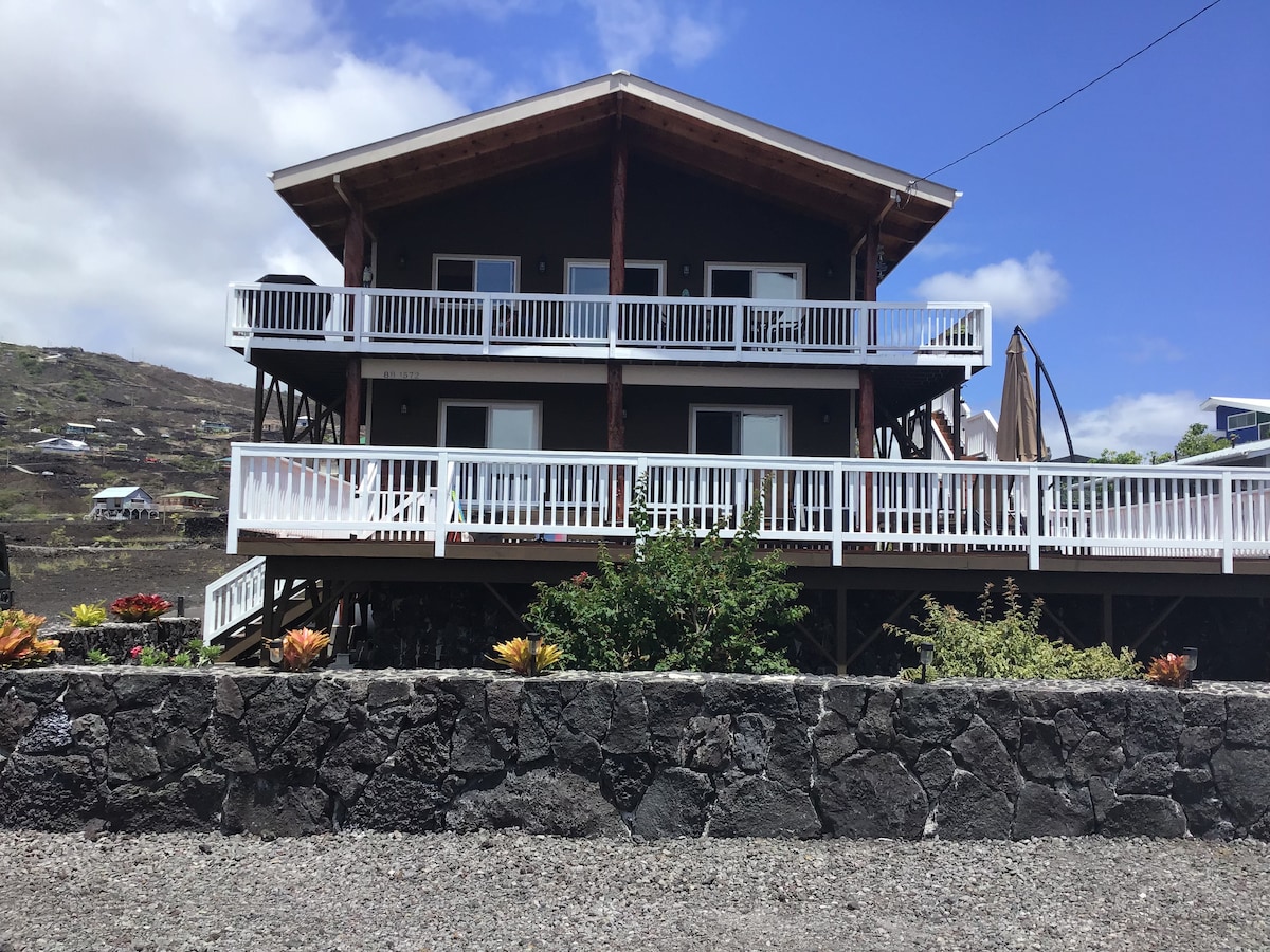 Kick back and relax in this calm, stylish space. 30 miles outside of Kona, this retreat features spectacular views from both the outside living spaces and every room in the house. Whether eating at the outdoor breakfast nook or just relaxing on the huge daybed, you will be surrounded by the breathtaking nature of the big island. At night, stretch out in the outside living room and listen to the ocean waves and see stars you never knew existed. NO CLEANING FEE!! GE/TA-066-813-7984-01