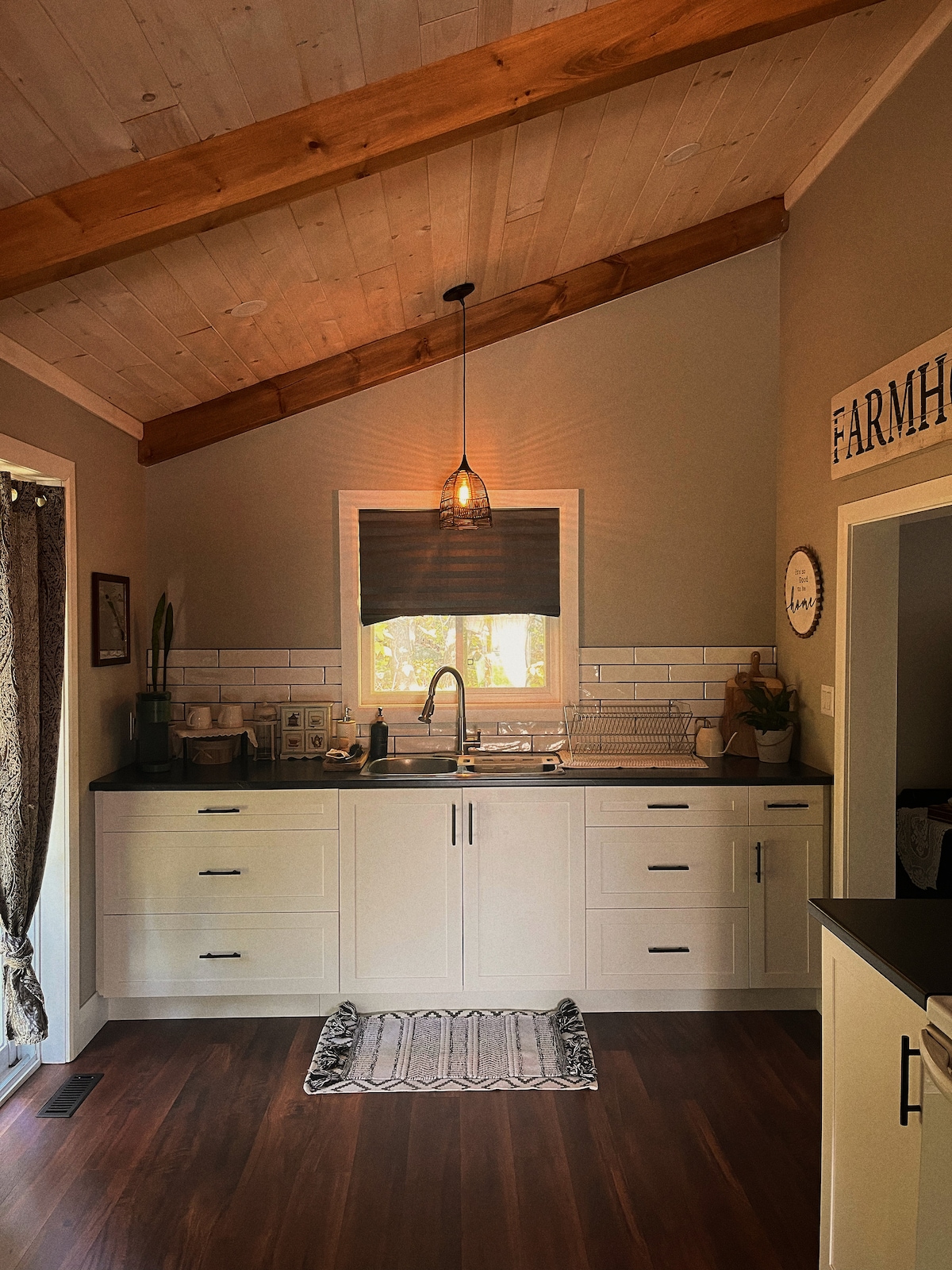 Our guest house is a cozy log cabin with three floors. It is the original homesteader cabin to our property, revived and restored with care. Nestled in the Bonnechere region of Renfrew County, this magical place of solitude offers nature right outside your door. Local paintings by Ottawa Valley landscape artist Angela St. Jean displayed throughout the cabin feature lakes, rivers, and natural places and spaces that surround us.