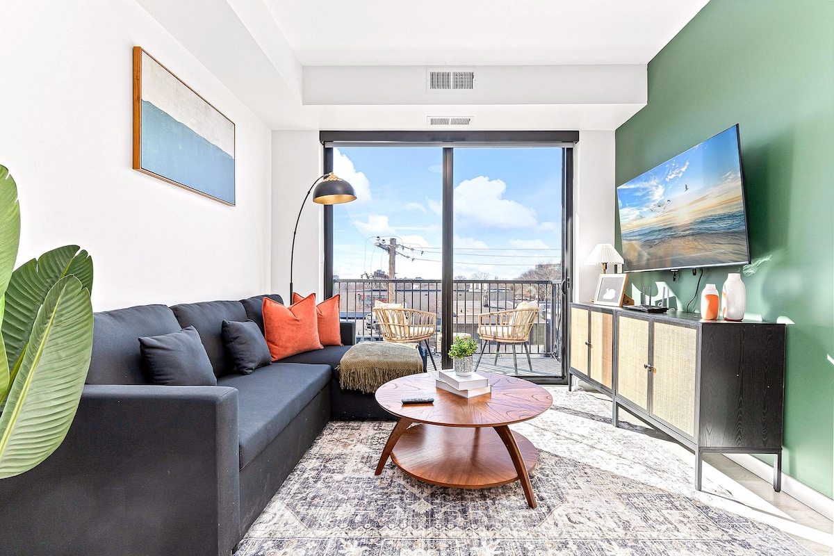 Urban 1BD Escape mins to DT w Gym, Wifi & Balcony