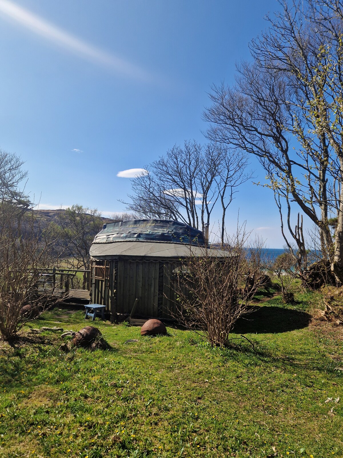 Retreat to the deck of this sustainable getaway and gaze at the twinkling constellations under a cosy tartan blanket. AirShip 2 is an iconic, insulated aluminum pod designed by Roderick James with views of the Sound of Mull from dragonfly windows. Airship002 is comfortable, quirky and cool. It does not pretend to be a five star hotel. The reviews tell the story. If booked for the dates you want check out our new listing The Pilot House, Drimnin which is on the same 4 acra site. The kitchen has a toaster, electric kettle, tefal halogen hob, combination oven/microwave. All pots and pans, plates, glasses ,cutlery provided. All you will need to bring is your food. worth stocking up on your way in as Lochaline is the nearest place to shop which is 8 miles away. The AirShip is situated in a beautiful, secluded position on a four-acre site. Stunning views reach across the Sound of Mull towards Tobermory on the Isle of Mull and out to sea toward Ardnamurchan Point.