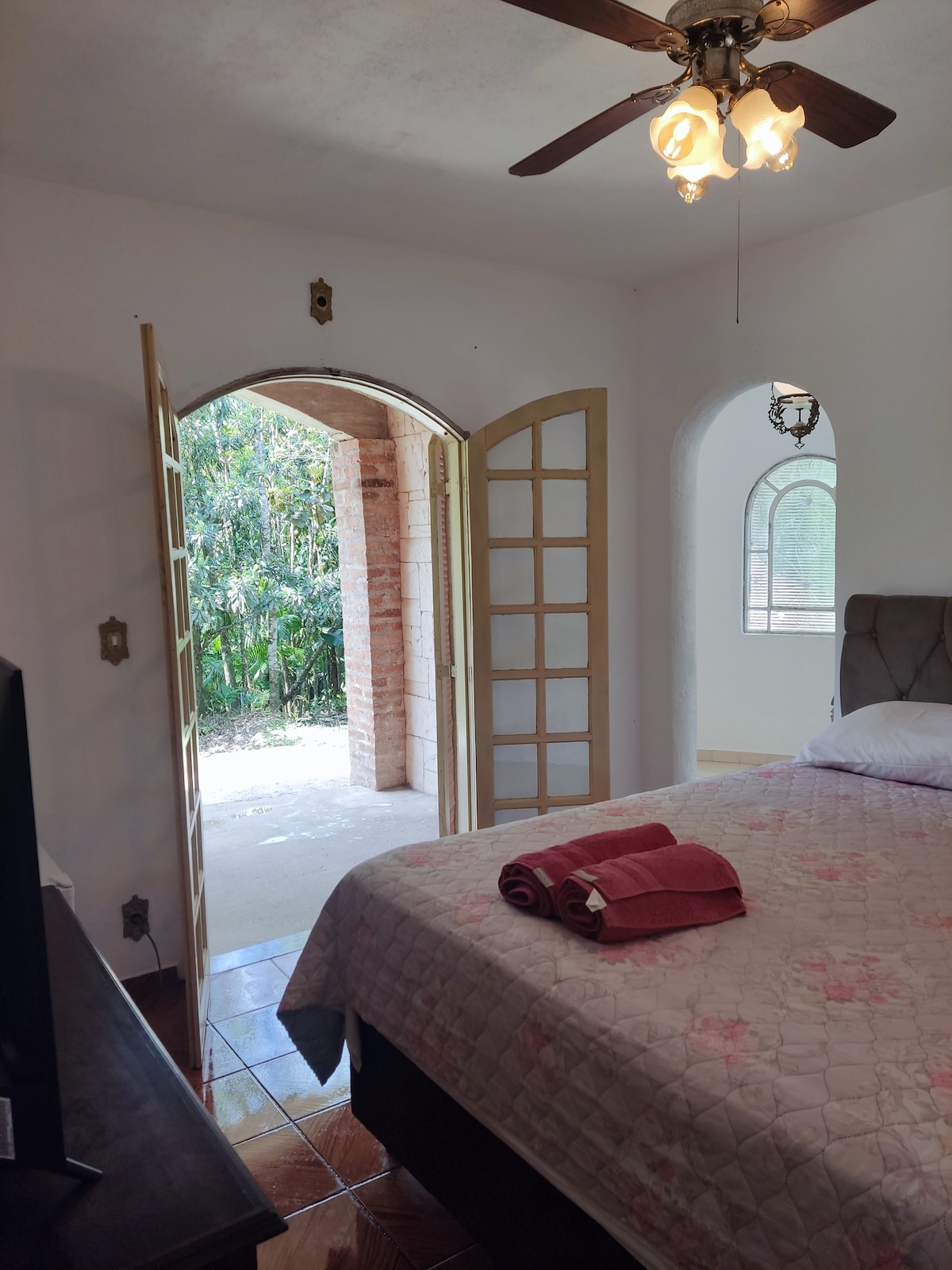 A beautiful space to be with family and friends close to nature, easy to access, surrounded by greenery, with comfort, fun and safety. Ideal for retreats. Outdoor area with swimming pool, wood stove, barbecue, mini soccer field, space for cars, vegetable garden, orchard, fresh air and waking up to the birdsong. 10 minutes from the village, 5 minutes walk from the river, 15 minutes drive to waterfalls and 30 to beaches. Meditate, renew yourself, enjoy nature and relax in this quiet and spacious place.