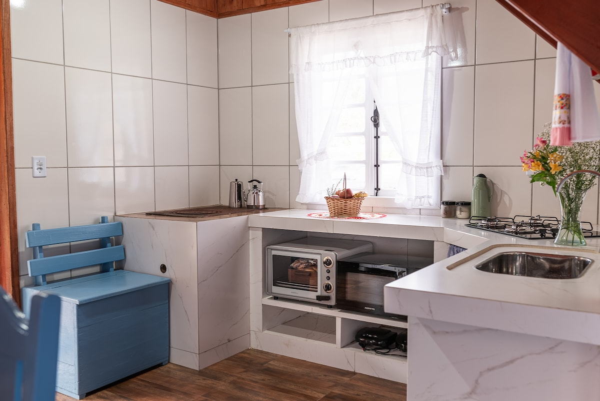 Enjoy the charm of this accommodation and the charms of the location in the Serra Catarinense, a new house built in the small village and with a lot of comfort, a large balcony overlooking the district and the beautiful architecture of the Santa Cruz Church made at the beginning of the century. It is close to the Pedra da Pechincha Portal, with a wonderful trail overlooking the canyon and waterfalls of the region. Also visit the round hill with splendid 360° views. Buy cheeses and eggs from the colony.