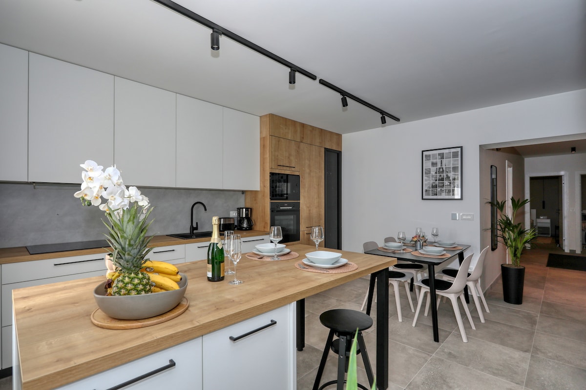 LaVida Penthouse – luksuzni smještaj s panoramskim pogledom na more. Uživajte u privatnom jacuzziju i sauni za potpuni wellness doživljaj. Prostrana terasa, moderan interijer i potpuna privatnost čine ga idealnim za obitelji i grupe. Samo par minuta od plaže. Dodatna zabava uz biljar i pikado. Savršen spoj luksuza, opuštanja i vrhunske lokacije....