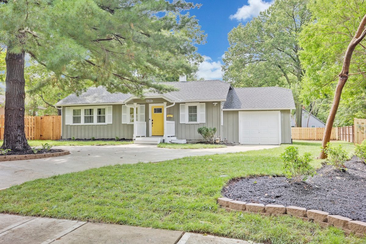 Experience the best of Overland Park from our charming, updated ranch. Nestled in a quiet neighborhood near downtown, this home allows you to experience the local lifestyle at its best. With two bedrooms, a modern bathroom and all the comforts of home, you will never want to leave! The interior blends cozy charm with contemporary amenities, while the secluded half-acre backyard is perfect for unwinding. Whether you’re here for a weekend escape or a longer stay, your perfect getaway awaits!