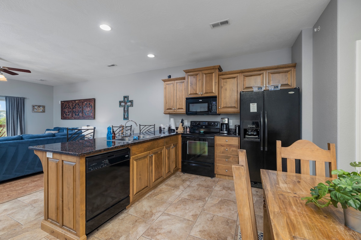 License STR-18-00048. Rare find! Welcome to western style ranch nestled right in the center of town. Walking distance to a park, food & shopping. Just minutes from KU & downtown. The kitchen sports a convection oven stove, dishwasher, full-size microwave, full-size fridge, and lots of counter space. Shady backyard to play in and a fenced-in side porch for relaxation or dog. For your convenience, we provide a full-size washer, dryer & desk to catch up on school/office work. Popular! book now!