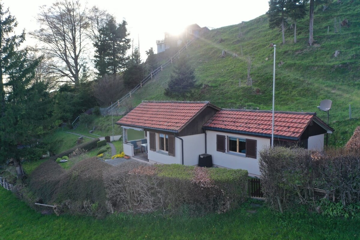 Holiday cottage on the sunny slope with beautiful views. After a short but somewhat steep walk to the bungalow, you can enjoy the view of the Alpstein with our local mountain, the Säntis, on a cozy terrace. There are many walking and hiking opportunities directly from the house. Please note: From the parking lot, it is about 100 m on foot relatively steep up the hill to the beautifully located bungalow on the edge of the forest.