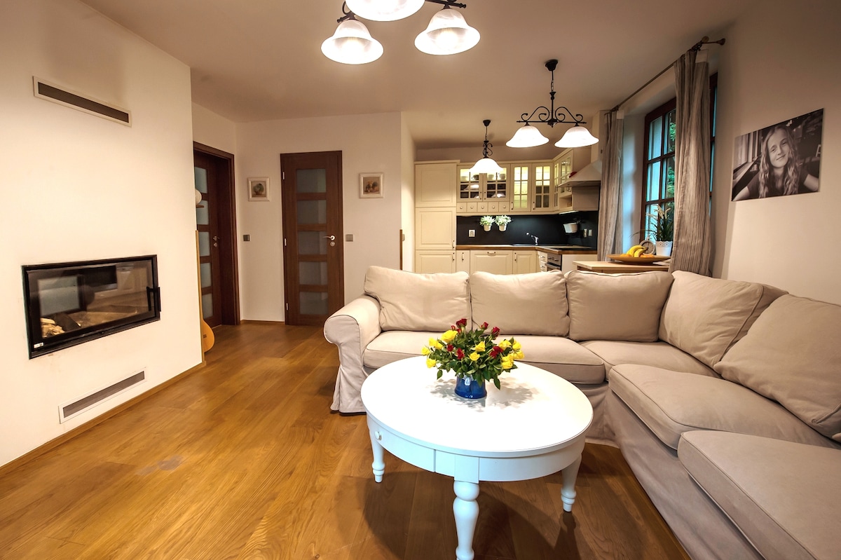 The cottage is located on the edge of the forest, 1,500 meters from the family Sport complex Klíny and running/cycling tracks. There are only two cottages in the immediate vicinity. Here you will find complete facilities for a long-term winter/summer holiday or just for a weekend stay with friends or family. In winter you will not be able to reach the cottage, you have to leave the car parked in a parking lot 300 m away.