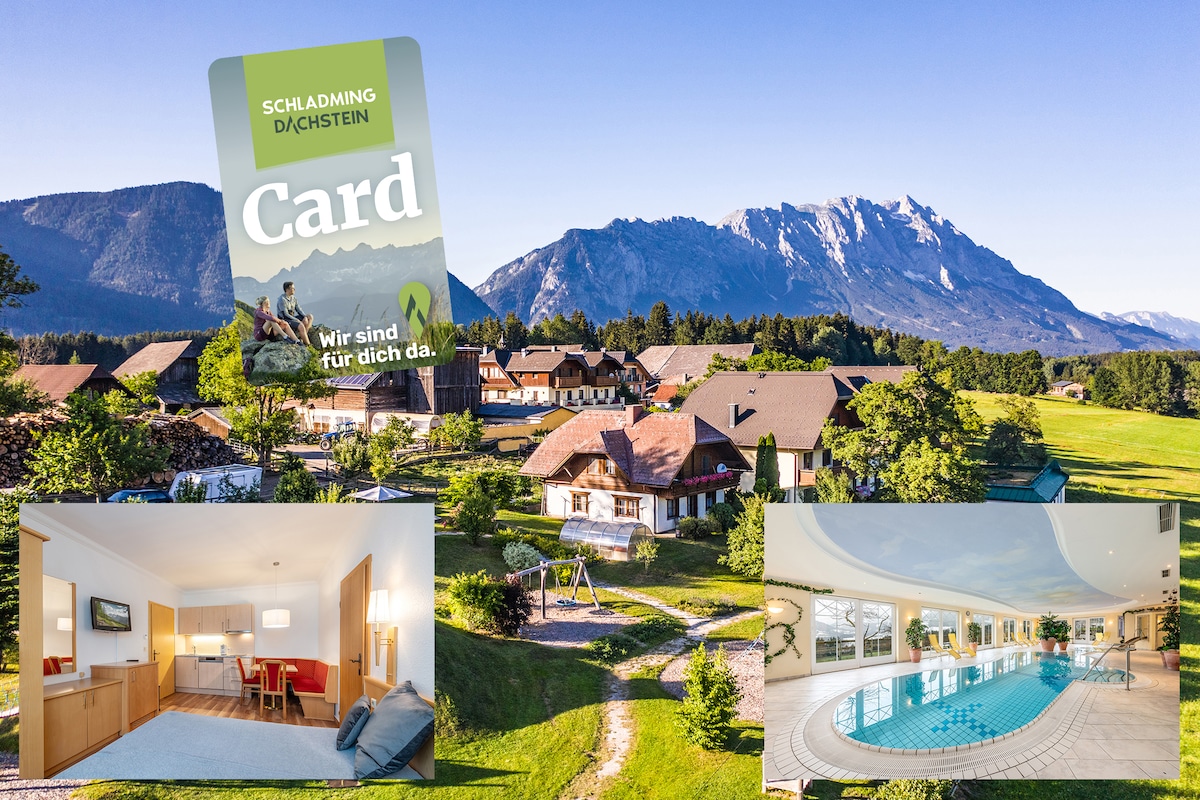The apartment is located in the countryside, well embedded in the "Schladming/Dachstein" region and is one of the accommodations of the "myNests" group. Indoor pool, spa & free parking is available. Breakfast can be booked. We look forward to your visit!
