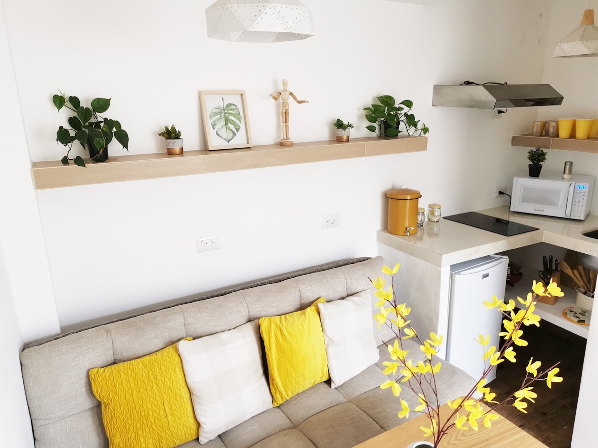 Located in Ciudad San Cristóbal, zone 8 of Mixco, Guatemala. It is an apartment of approximately 50 square meters located within a residential complex (private house) on the first level consisting of an open space, sharing areas such as the living room, kitchen and dining room equipped with a full bathroom, bedroom (with 2 beds) and space to work, a sofa bed, laundry (washer, dryer, sink) and a small garden, surrounded by another garden.