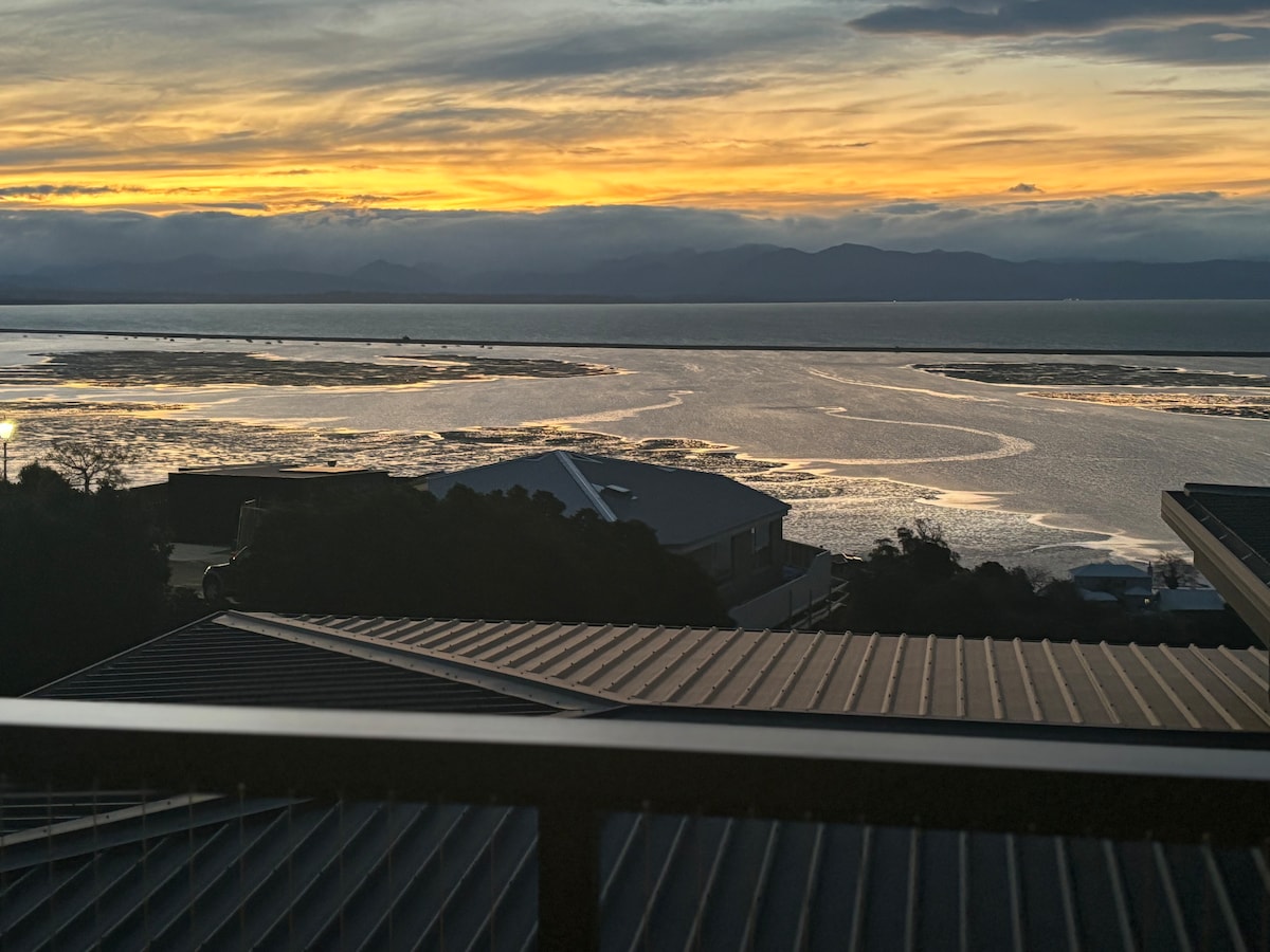 Gorgeous views and bird song, with complimentary breakfast cereals tea/ coffee. Beautiful, fully refurbished private studio, attached to larger home. Own entrance, deck, ensuite, kitchenette-not full kitchen. Overlooking Tasman Bay, Nelson Haven, Boulder Bank, Mountains of the Abel Tasman National Park and Garden - Home to native birds eg Tui and Piwakawaka. Tranquil base to relax and explore the region. 400m from the coastal walking/cycle trail. City 5 min drive, 40 min walk, 15 min bike ride.