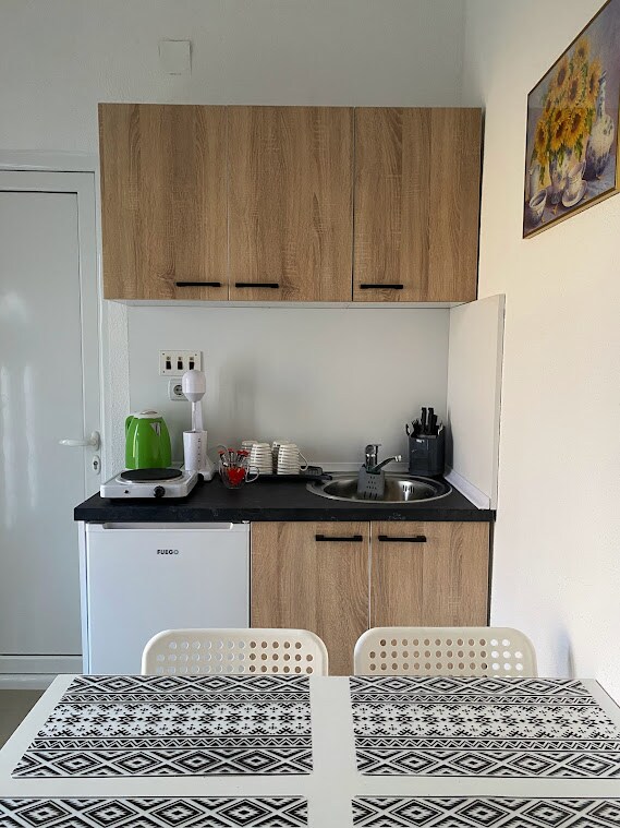 Nestled in the quiet village of Stojakovo, North Macedonia, Ciconia Apartments offers modern comfort just minutes from the Greek border. Surrounded by nature and known for its stork population, our brand-new, non-smoking apartments are perfect for stopovers, families, couples, or anyone seeking serenity, style, and convenience. Each unit features a terrace with garden views, a fully equipped kitchenette, and a private bathroom with a bath or shower. Self check-in.