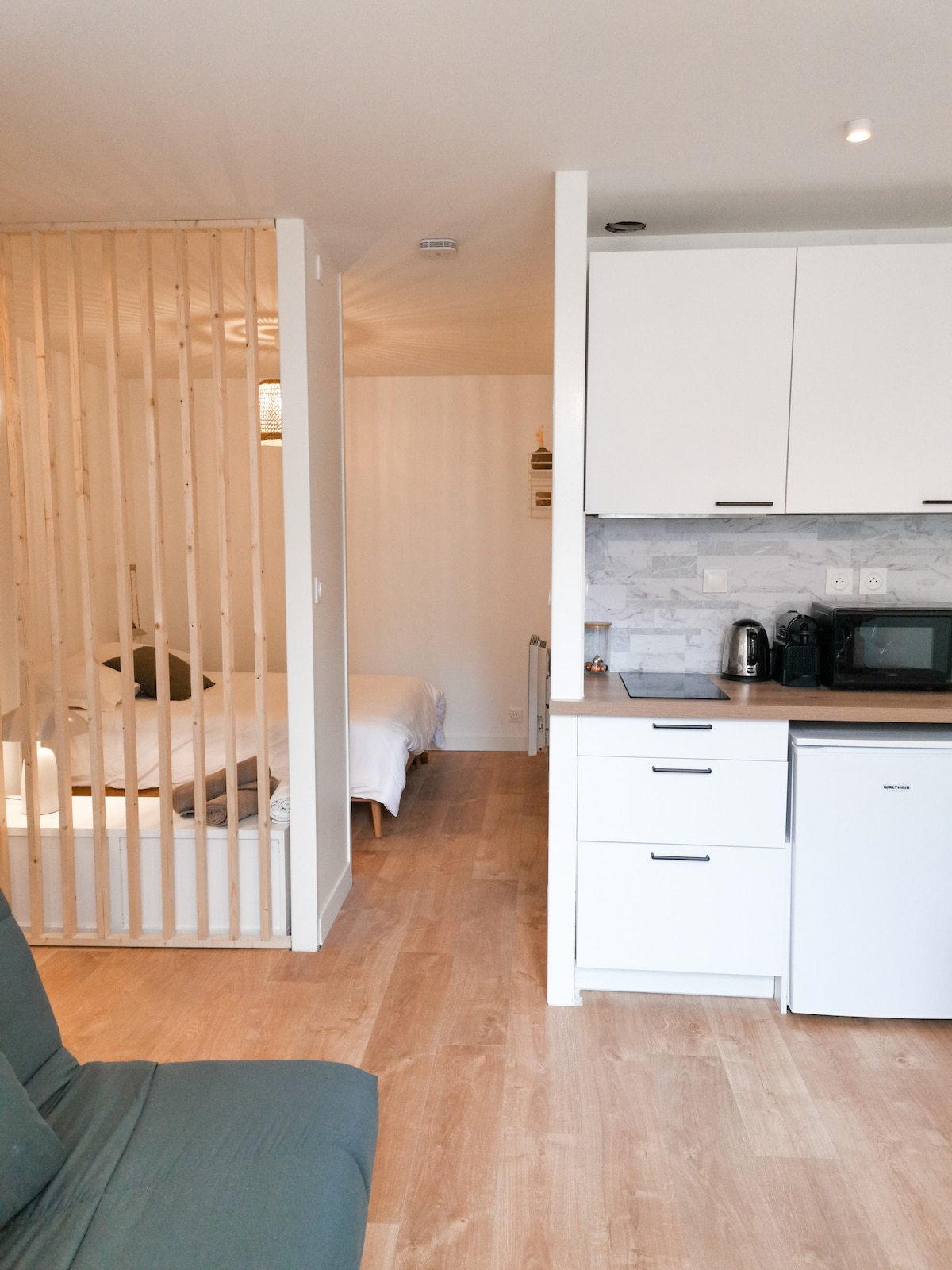 The Good Vibes Room welcomes you for a relaxing stay for two: Private BALNEO, COMFORTABLE BED EQUIPPED KITCHEN Calm guaranteed for a stay in complete autonomy. Perfect for couples, but also pilgrims or workers looking for rest after a long day. Self check-in, cozy atmosphere, good vibes guaranteed!