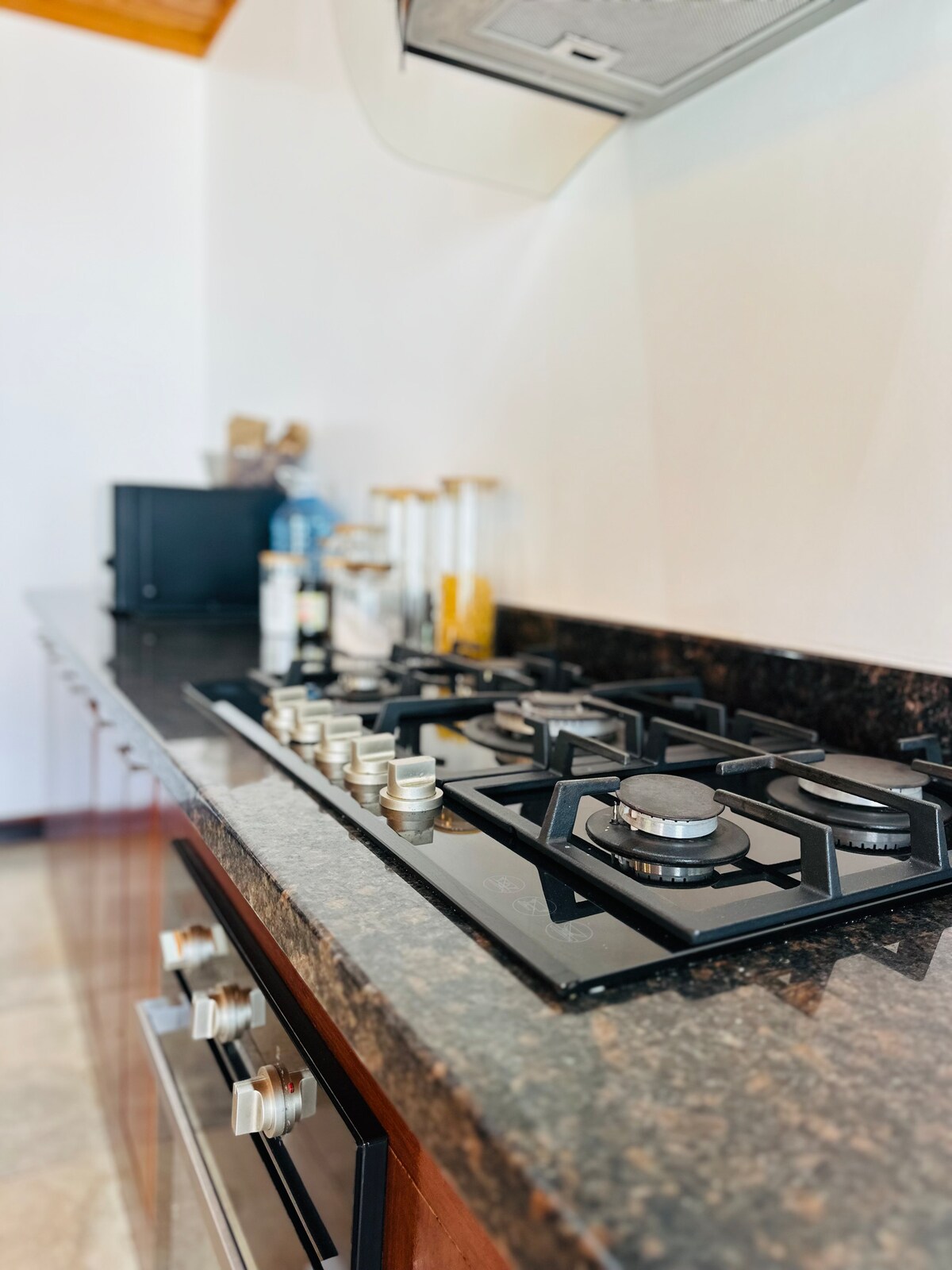 Relax with the whole family at this peaceful place to stay. Opting for a clean and uncluttered energy, look no further you'll find this gated own compound three bedroom house a safe haven. A fully stocked kitchen awaits for the chef's of the group and the family and a coffee machine to awaken your day for the coffee maestro. The living space displays a touch of color and love to complement an artisan decor and minimalist taste. Colors are bright and therapeutic. Wide size windows