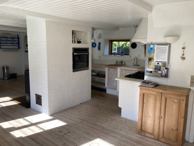 A charming three-bedroom property, beautifully located on the outskirts of Skafterup and on the way to Bisserup, where there is a sandy beach and a local cozy harbor. An 80 m2 apartment with open living room and kitchen, wood-burning stove and direct access to the garden. Focus on Sustainability with, among other things, recycled furniture. The property has been renovated with respect to the old principles - windows of core wood (1809) painted with linseed oil, timber with dowels, paper wool insulation, straw roof, etc. Waste sorting and recycling are also important