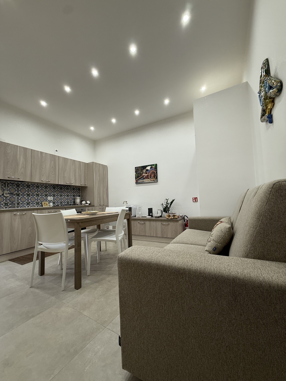 On the first floor of Palazzo Guccia, Guccia Home has been renovated to ensure guests privacy and comfort. It is located a short distance from the Cathedral and the major points of interest. The heart of Guccia Home is its Hammam, the steam bath shower and the Whirlpool and Airpool tub ensure relaxation and well-being. The bedroom is spacious and welcoming. The living room/kitchen is equipped with dishes, small and large appliances, comfortable sofa/bed and smart TV