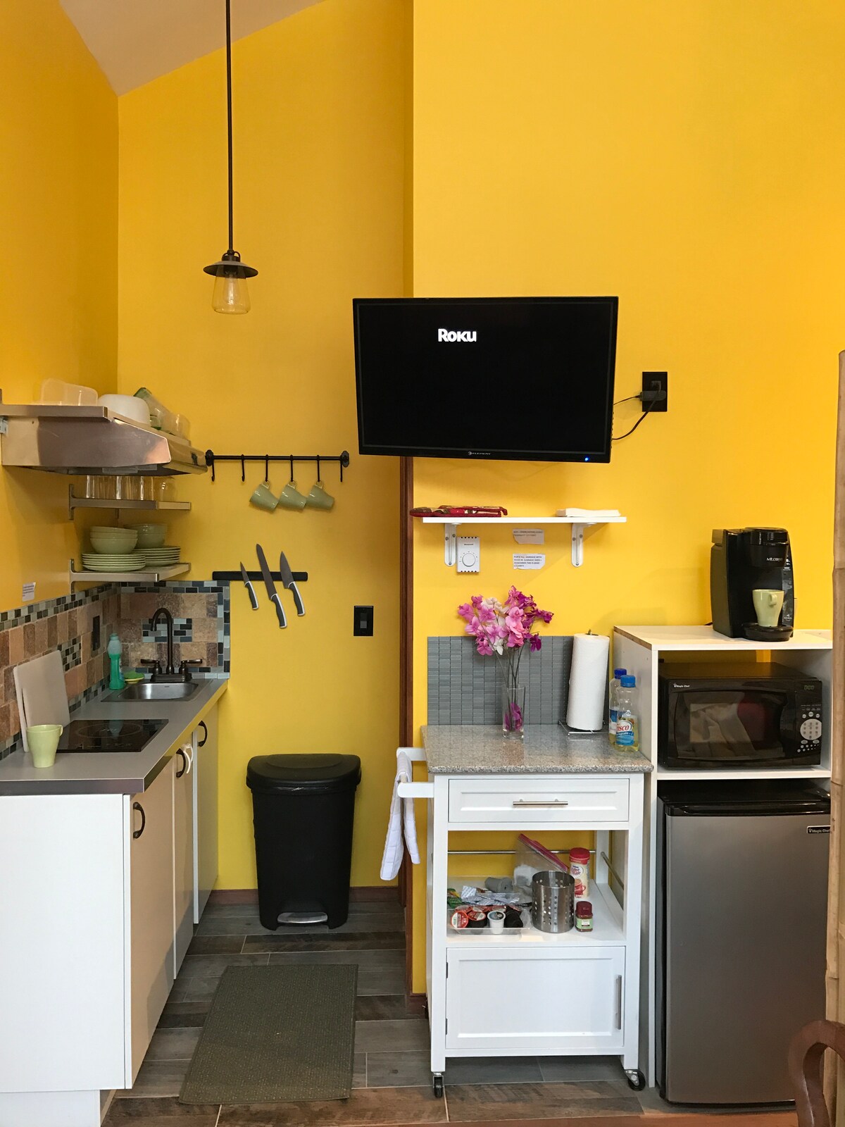 A Gem in the Poconos, Modern,charming,fully equipped, self-contained studio with private entrance. Close to golfing,skiing, water parks and Bushkill falls Great hiking trails in the heart of Delawre Water Gap Recreational area Thirty minutes from Pocono raceway. Quiet backyard nature sanctuary. your own grill area with charcoal grill-fully equipped kitchenette with cooktop induction burner. Perfect getaway.Pet friendly fenced in back yard $50.00 pet fee will be added when you book.