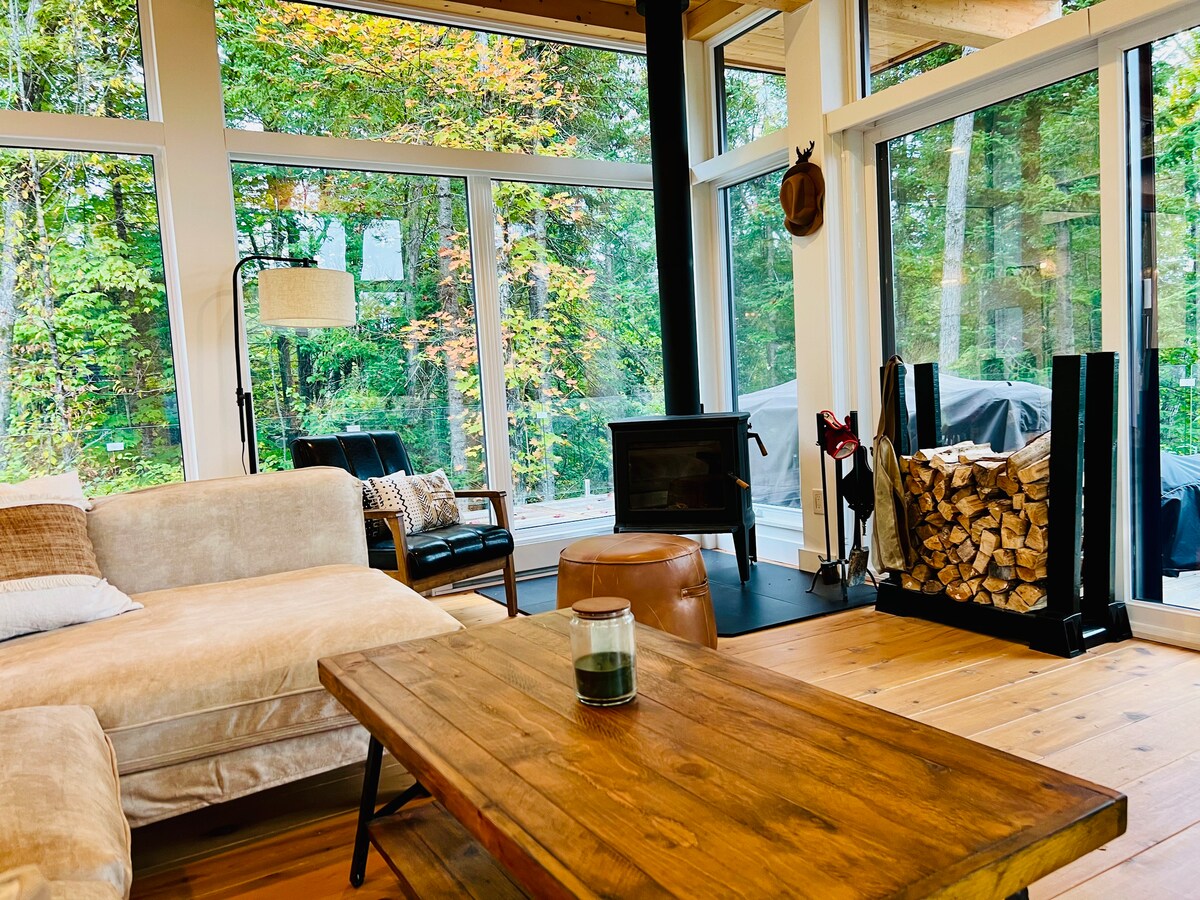 Take advantage of the soothing effect of nature by staying in this contemporary chalet with lots of windows in the heart of the forest. Tremblant is beautiful no matter the season. Dream outdoor destination, you will be 8 minutes from Mont-Blanc and 20 minutes from Mont Tremblant. Whether for hiking, cross-country skiing, snowshoeing or snowmobiling, trails are easily accessible in all directions. Without forgetting the famous P'tit Train du Nord 3 minutes away.