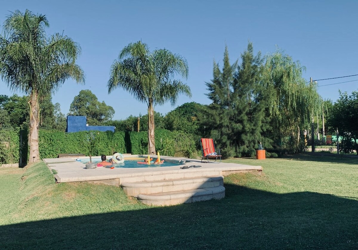 "El Chajá" Ranch Relax in this unique and quiet getaway. Come and enjoy a beautiful country house, built in 1929, in the setting of a 2-hectare park, with ancient trees of various species. It has 4 bedrooms, 2 full bathrooms and a toilet, a large kitchen, a dining room, a living room and a laundry room. Outside, there is a swimming pool and a barbecue area in the shade of the trees. Located 120km from CABA.
