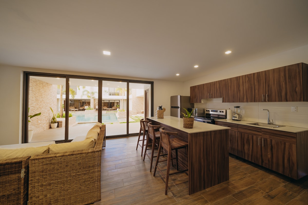 If you like oceanfront sunsets, natural environments, and comfort without luxury, you'll love our house. It has its own pool, 3 bedrooms with their own bathroom (4 people per room), palm trees and a spectacular view. Our house has fresh water that comes from a nearby well. The pool is also freshwater. The house's kitchen is very well equipped. We frequently renew pots, pans, cutlery and others so that they are always in optimal condition.