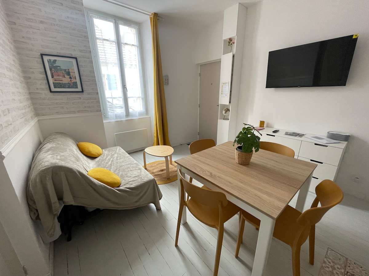 Enjoy an elegant and central 2-room accommodation, refurbished with insulation, located 2 minutes' walk from the train station, 8 minutes from the historic center, free parking. Fiber Wi-Fi, office space, TV. Equipped kitchen with all the essentials, washing machine, dishwasher. Non-smoking. Located on the 2nd floor in a quiet beautiful building with digicode. Self check-in access. Luggage can be stored in the cellar if you arrive before your scheduled time.