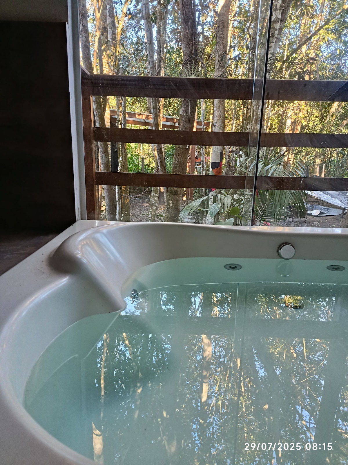 High-end cabana located in the rural area of São José dos Pinhais on a safe property, surrounded by incredible nature. * Included is a breakfast basket proportional to the number of nights, basket available on arrival. * Relax in our internal hydromassage. * Fireplace * Air conditioning * Fire pit * Fully equipped kitchen (Fridge, sandwich maker, cooktop, oven, microwave, coffee maker, pots and utensils). * Smart TV. * Internet. * Gas heating. * Local for 2 people (+18)