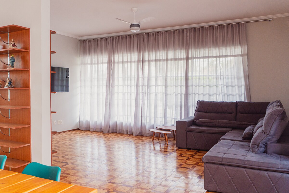 Relax in this quiet and comfortable space. Large 150 m² space, with an exclusive work area, where you will have everything you need for a pleasant stay. There is air conditioning in the bedrooms and office. The neighborhood is familiar and safe, even though it is not a condominium, it has security guards. Minimum stay 5 nights.
