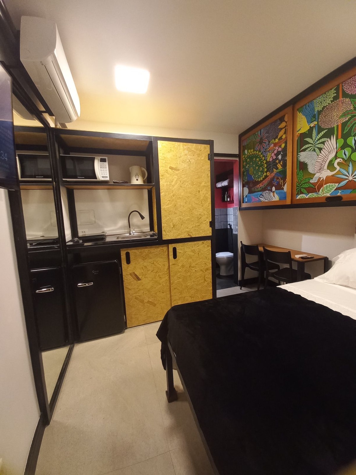 Stylish and safe independent apartment, with internet, television, air-conditioning, 24-hour concierge, bathroom, kitchen with microwave, electric kettle, induction stove. Great location in Copacabana. Cantagalo Metro is a two-minute walk. Posto 5 Beach is a 3-minute walk. Access to Lagoa via the street itself in 5 minutes. Flexible check-in and check-out if you don't have reservations on consecutive dates.