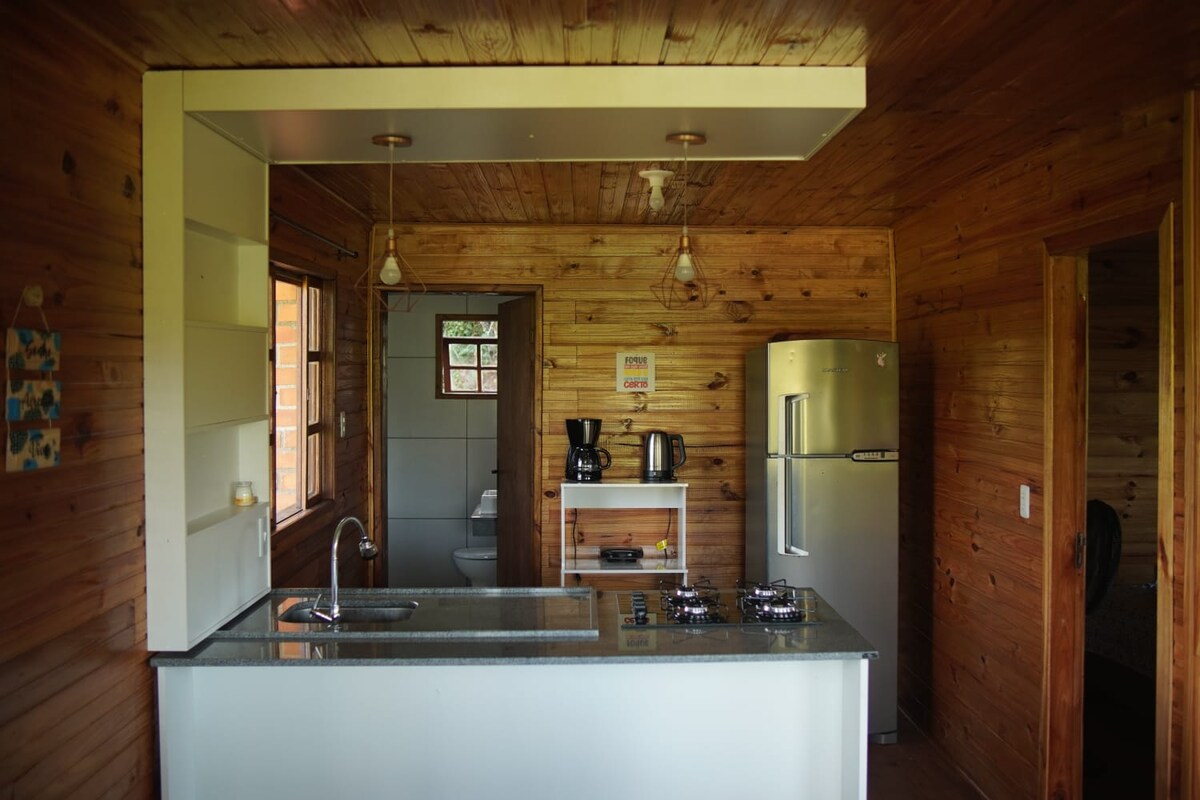 The Pitanga cabin is the perfect home for a couple, a small family or a group of friends. It has a covered barbecue and a private outdoor area. The house is very close to one of the accesses to Arroio Valdez, and is equipped with everything you need for a weekend in the midst of nature in the greatest comfort.