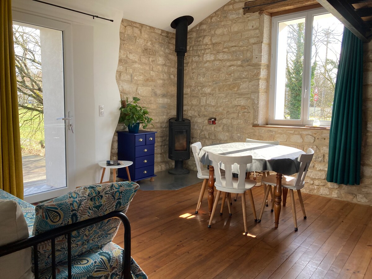 Come and enjoy a peaceful cottage in the countryside, by the water. You have private access to the terrace and the Nordic bath heated on request before your arrival. You have a separate entrance to the accommodation, which is located at the back of our house.