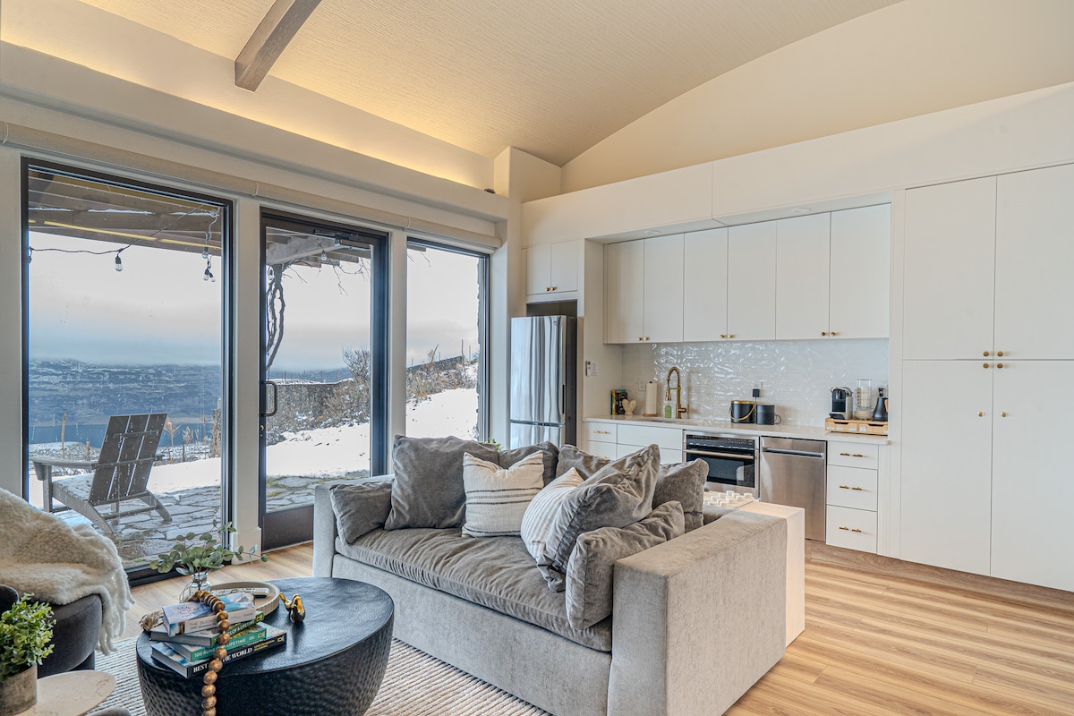 The Backstage Pass 2D Cave B Ridge Condo – Perched on the exclusive ridge right next door to the iconic Gorge Amphitheater, this modern retreat offers breathtaking, unobstructed views of the Columbia River, Cave B Estate vineyards & Winery, and Sagecliffe Resort & Spa. Relax on the outdoor patio with a BBQ, fire table and seating—perfect for taking in the scenery, sunset hues, and stargazing. Inside, enjoy ultimate comfort with a separate bedroom HVAC system for personalized climate control.