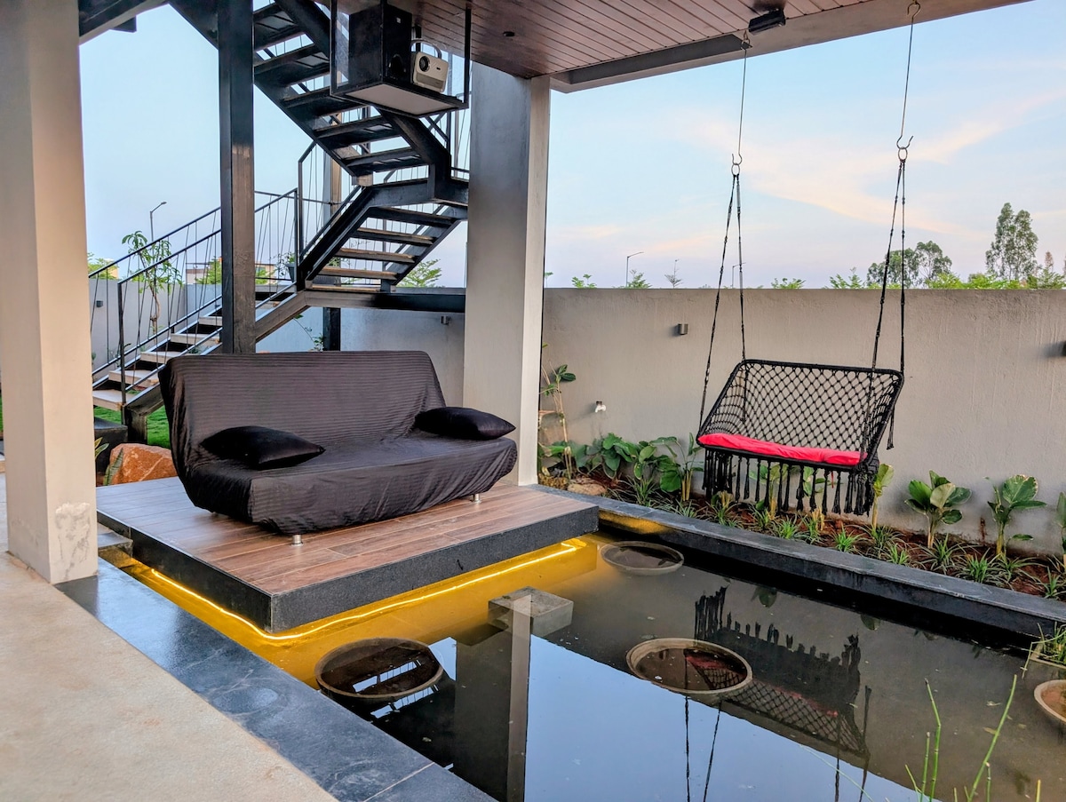 Escape to our serene 4 BHK newly launched villa near Nandi Hills, featuring a private swimming pool and stunning, unobstructed best views of the Nandi Hills, and a lake. Spacious, spotlessly clean rooms and airy bathrooms with skylights enhance the sense of openness. The villa offers the perfect blend of comfort and nature, ideal for a peaceful retreat away from the city. Please refer "Other things to note" below.
