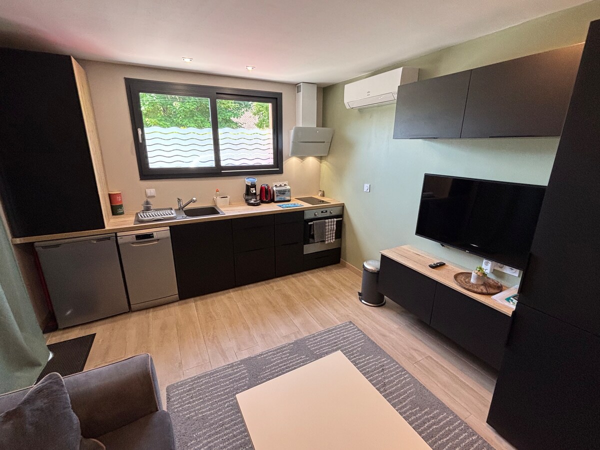 Modern air-conditioned 2-star wooden frame accommodation located in Rumilly, easy to access, 10-minute walk to the train station. Located in a cul-de-sac, adjoining the owners' home, you will have tranquility to rest during a stay. The accommodation is within walking distance of all amenities. Rumilly is located halfway between Lake Annecy and Lake Bourget, Rumilly is a town in the countryside with more than 19,000 inhabitants, rich in its quality of life and dynamism.