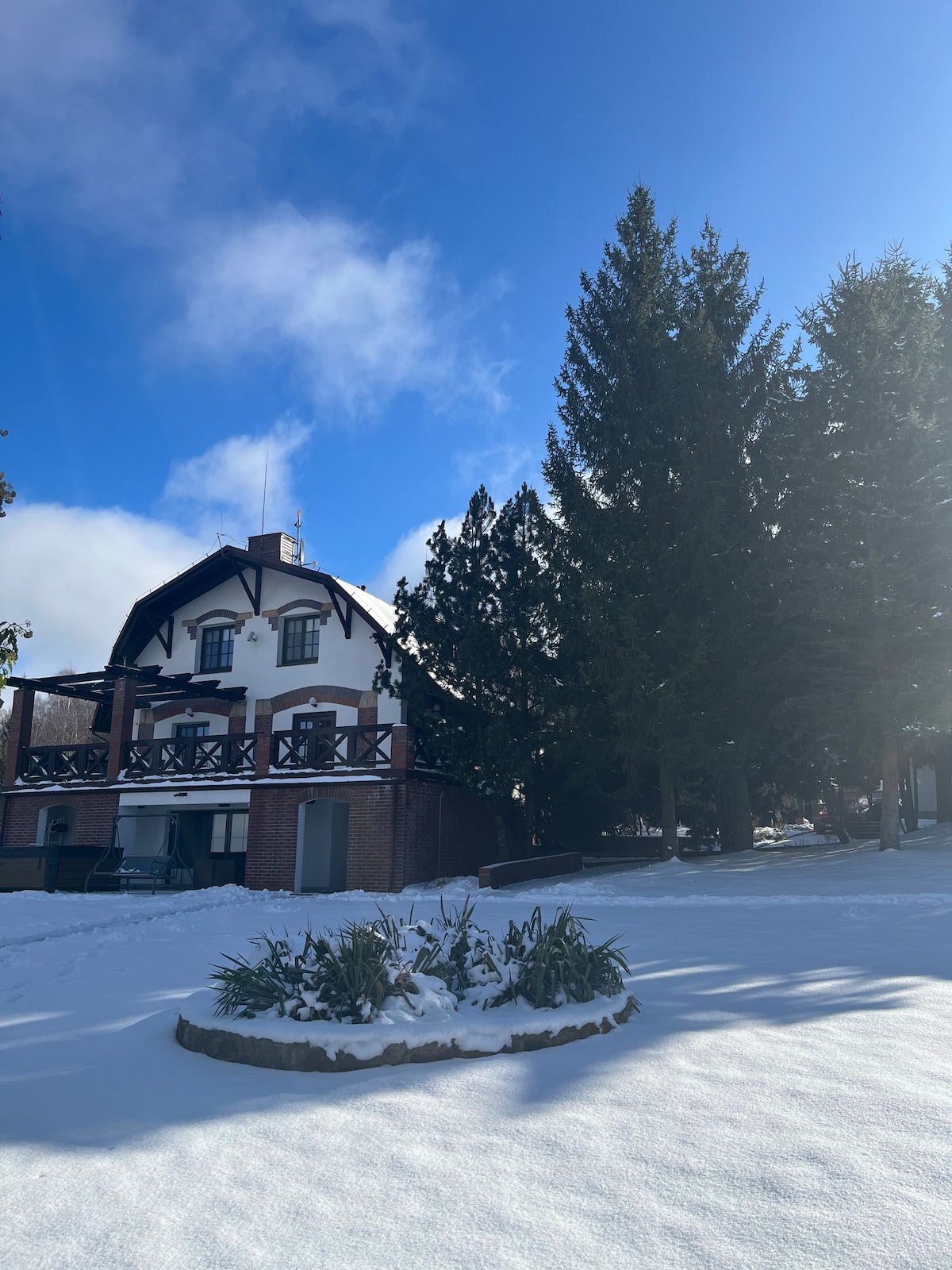 A 5-bedroom house for 10 people. A living room with a fireplace connected to the kitchen. In the Barn there is a billiard room with a fireplace. The house has a very large wooden terrace with a Jacuzzi (open in the summer season), sun loungers, sofas and an outdoor dining room. The barn is located in a large garden for the exclusive use of guests, with access to a pond with a bridge. There is free Wi-Fi in the house. The barn is an allergy-friendly place, so we invite you to come without pets.