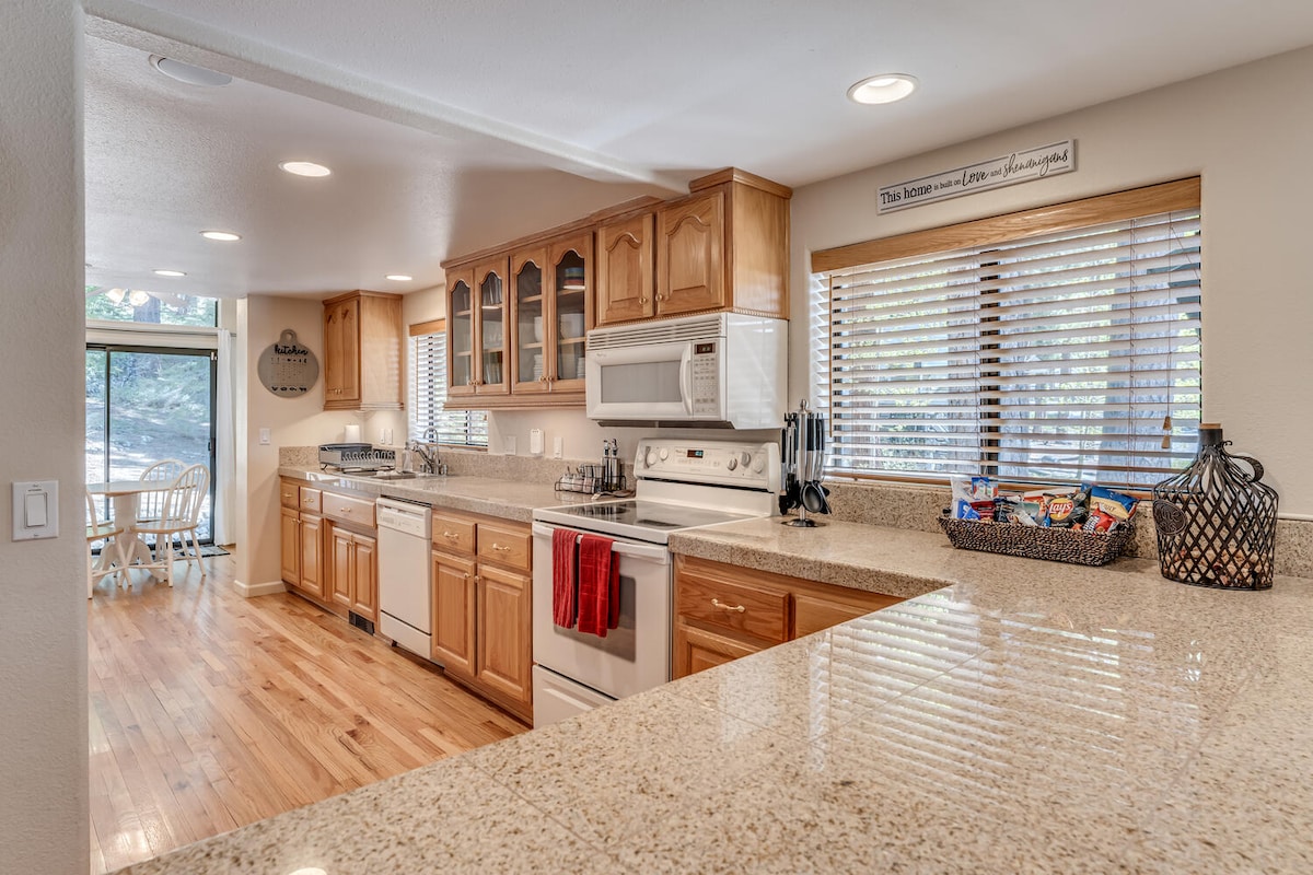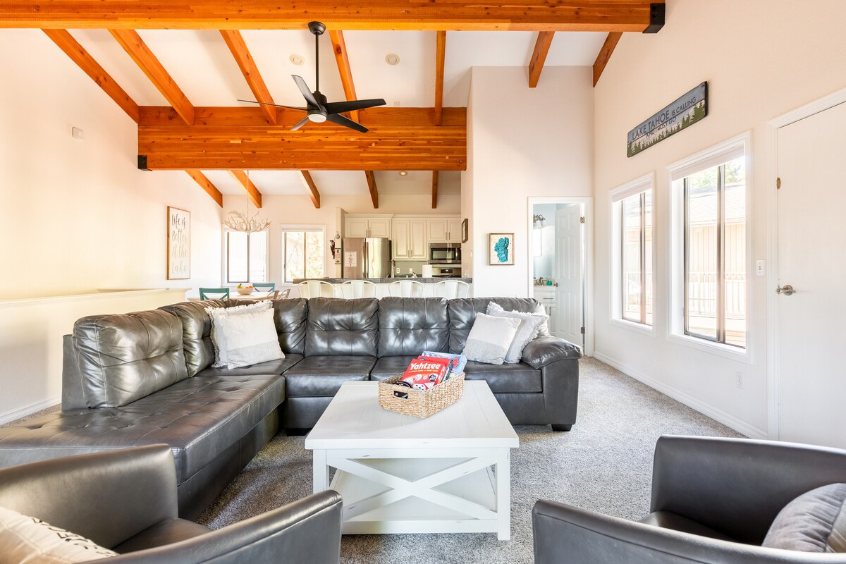 Fully remodeled base camp for your Tahoe stay! Single-family home w/1,386 sqft, vaulted ceilings, 12 in 1 head-to-head arcade table, 2 bedrooms, 2 bathrooms, 2 smart TVs (65" & 42") w/streaming included, & 200mbs+ WiFi. 2nd bedroom has a full over full bunk & a king bed. It's tucked away in a quiet neighborhood. Patio w/gas grill is off the kitchen & a private backyard. Washer/Dryer in unit! 1 block to the Champ Golf Course, 5 mins to Diamond Peak, & 10 mins to Sand Harbor.