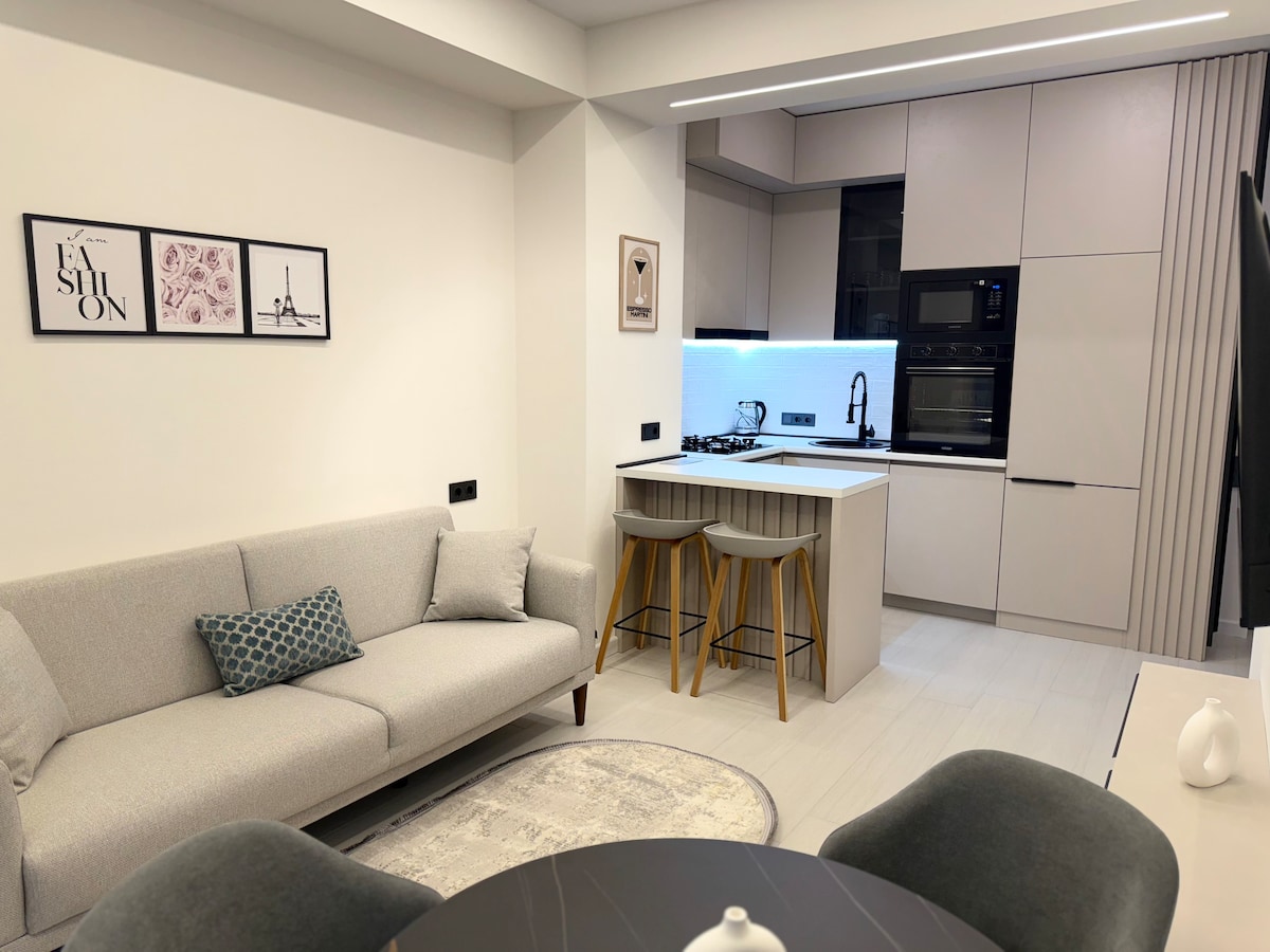 The apartment is a prestigious ecological clean area on the territory of the hippodrome. Studio with all conveniences, one bedroom large bathroom, a kitchen is equipped with home appliances and it has a large balcony. The total area is 55 sq.m. The apartment is located in a prestigious ecologically clean area on the territory of the beaten racetrack. This studio has all the amenities, bathroom, kitchen, hallway and big balcony. Total area 55 sq.m.