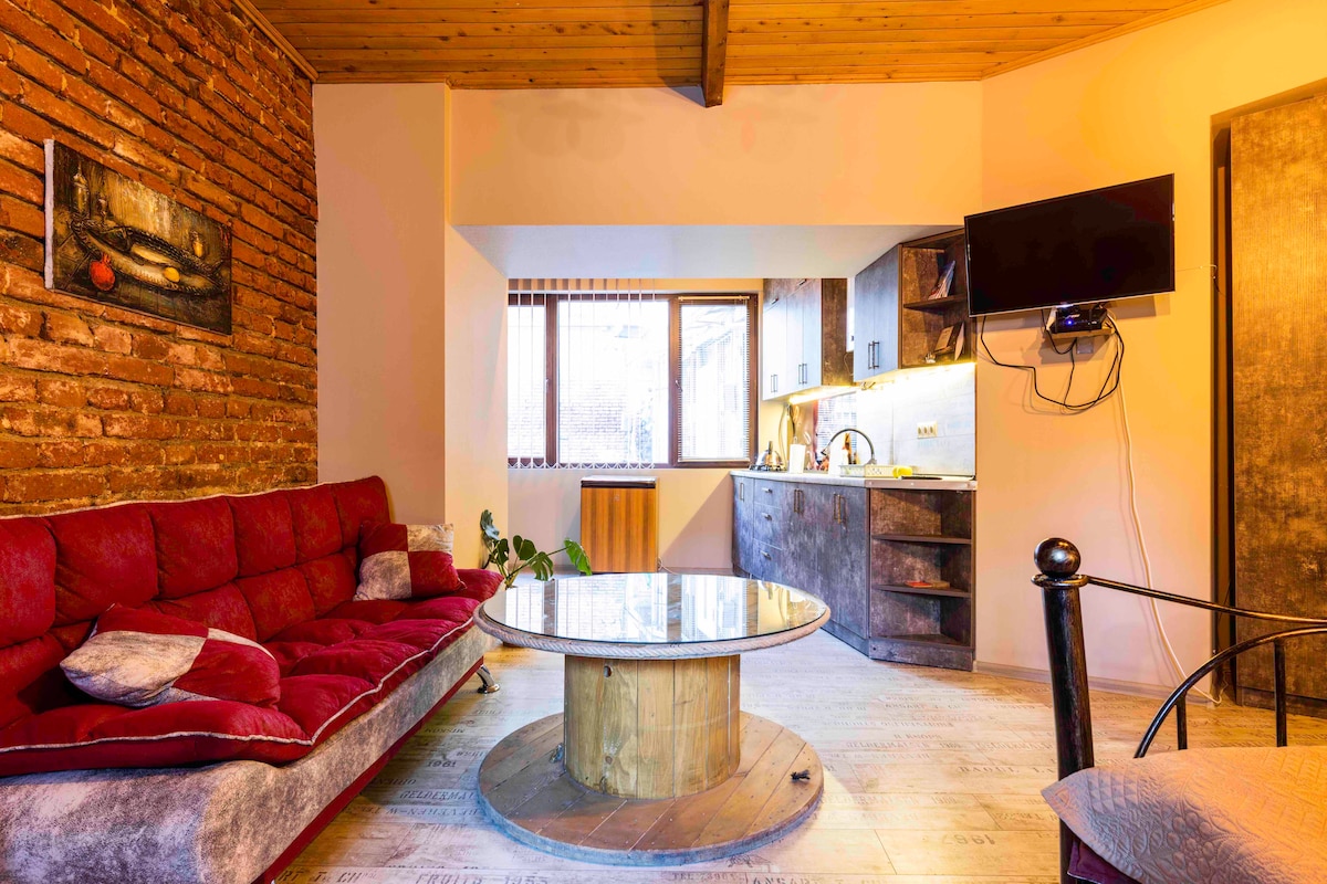 Welcome to our beautiful loft located in the heart of old Tbilisi's cultural heritage district, Sololaki. Our recently renovated loft boasts a vintage Georgian style, complete with authentic bricks, wood ceilings, and restored doors. With a panoramic view from the huge balcony, you can enjoy the breathtaking scenery that surrounds you.
