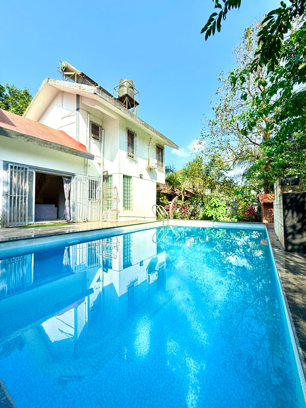 Escape the city & rejuvenate in nature with family at this half acre, peaceful, beautifully restored farmhouse - complete with your very own private stream! The property has multiple levels of lawn, and is abundant with trees and plants. The house has been restored in a Goan/Portuguese style with Burmese teak wood doors and windows, Spanish tiles and original teak & rosewood furniture. Relax on either the front or back balconies, and enjoy extensive garden lighting, and a bonfire at night!