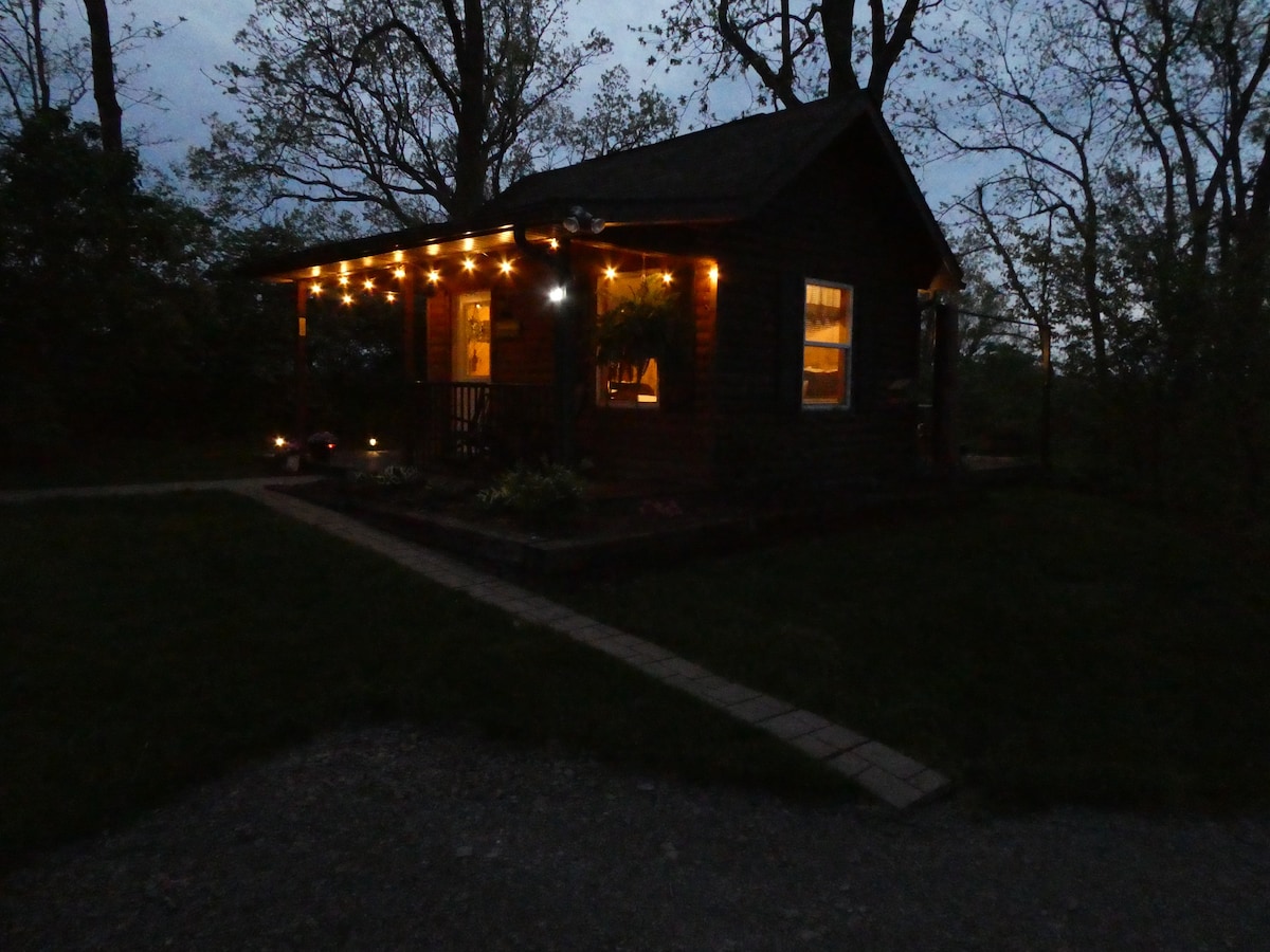 Self check for convenience Tiny cabin with all you need squeezed into it for pleasant stay. It is located on a secluded property not far (5 miles) from major interstates. It is a small guest house across the lawn from our house where my wife and I live. It has window AC and wifi available. Free continental breakfast foods provided. (There is no kitchen) Cleaned to perfection ! We do spray for bugs but it is not unusual to see some spiders and bugs since the cabin is right against the woods.