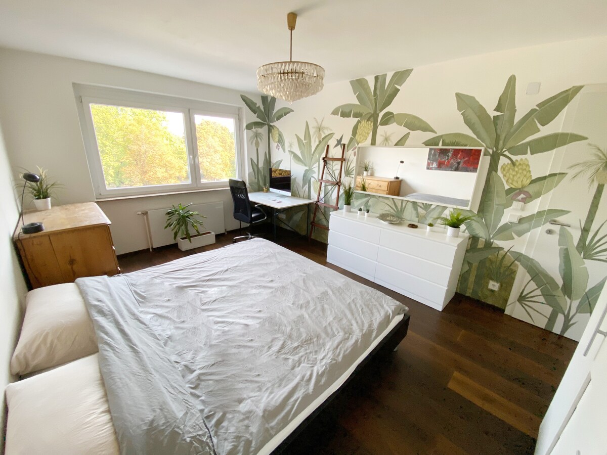 Make yourself at home! The ideal accommodation for you - whether for work, event visits or a city trip with your loved ones. The lovingly furnished old building apartment envelops you with its charm - and from the first moment. With attention to detail, everything you need for your stay has been taken into consideration. In addition to the fully equipped kitchen, large living room and a modern workplace (high-speed WiFi), the apartment offers you a great bathroom with washer-dryer.