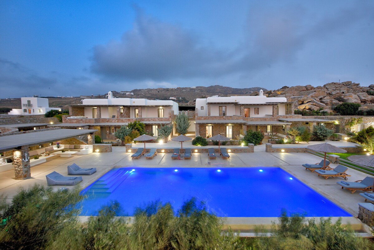 Villa Milou is a quiet residence located in the northwest part of the island near Fanari (Lighthouse) hill, the most exclusive area of Mykonos. The residence is built according to the cycladic architecture of Mykonos and stone prevailing throughout. It offers magnificent views of nearby islands of Delos, Syros, Tinos, celebrities' villas, panoramic views and breathtaking sunsets. The view from the terrace is just impressive.