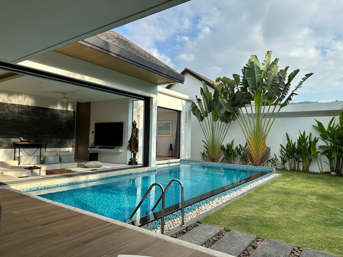 Villa Amata The villa is located in a very beautiful location, surrounded by hills covered with tropical forest. In the living area there is a compact but fully equipped kitchen. A large sofa and a TV and a dining table. A terrace with sun beds. Master bedroom, designer bathroom is located right in the bedroom The guest bedroom has a 160 cm bed, the bedroom has a walk-through bathroom Saltwater pool, no chlorine. .Naiton and Naiyang Beaches are a 5-minute drive away