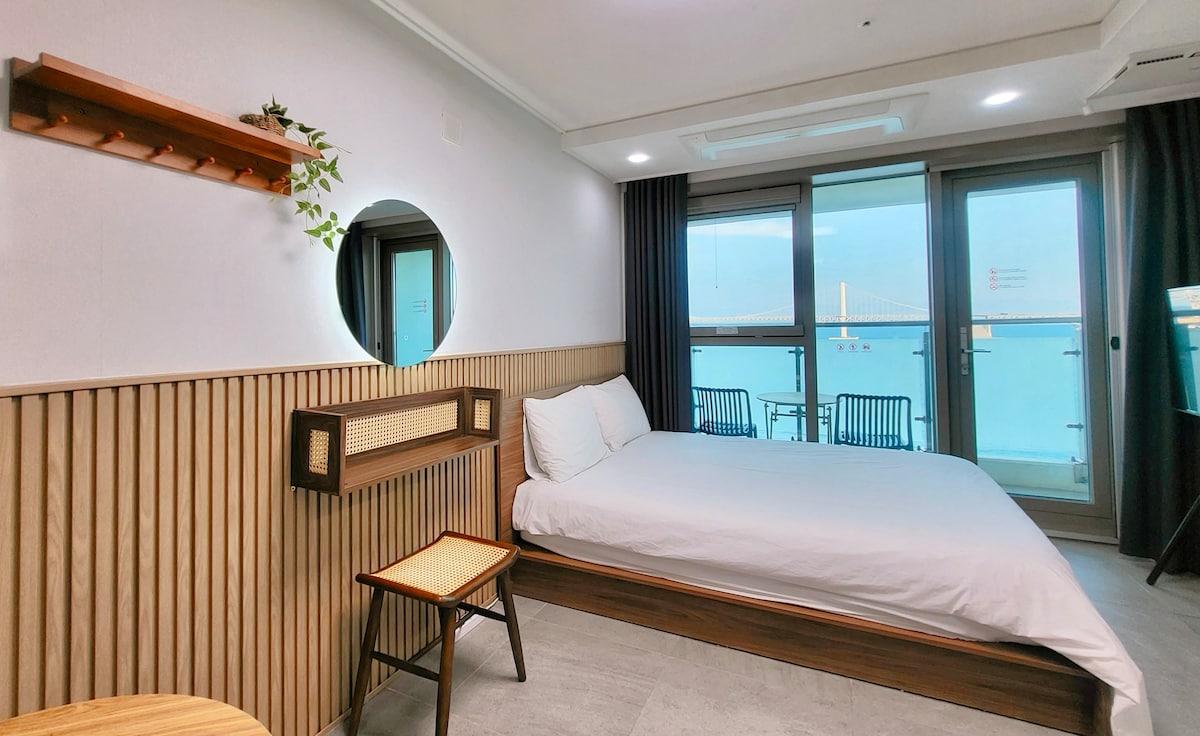 1. Morning sunrise at Gwangan Bridge view and open terrace, 2 queen beds in the bedroom.Free parking (only for cars with a height of 1.55M or less) Electric cars x 2. 12 seconds to the white sand beach- 3. Convenience stores and famous cafes are 15 seconds away-- 4. Free use of the latest "Dyson Airwrap" (rental if applied the day before) 5. 430m.5 minutes west of Subway Line 2 (Geumnyeonsan Station)- 6. New building (about 3 years) pleasant environment- 7. Spacious indoor space (24 pyeong/including open terrace) 8. Clean indoor space and 100-inch Netflix free viewing